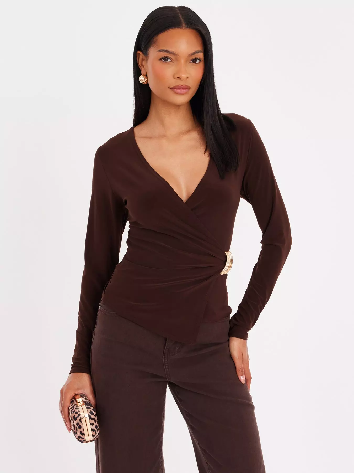 E.A.N: 5 0 6 3 3 3 1 3 6 7 5 9 9Quiz Brown Wrap Buckle Detail Top