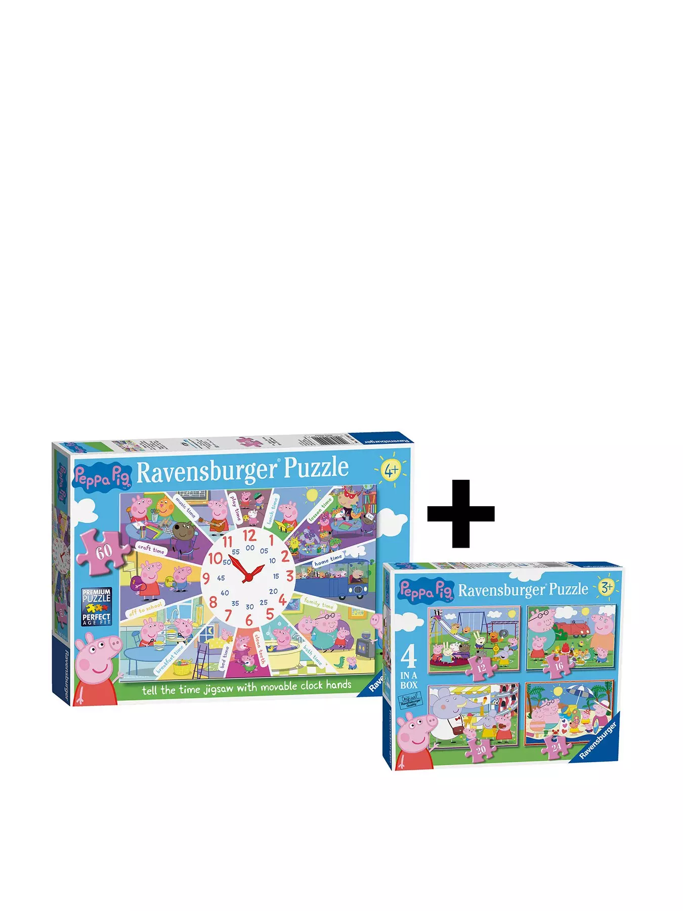 RavensburgerPeppa Pig Jigsaw Twin Pack - 4 in a Box & Clock Puzzle