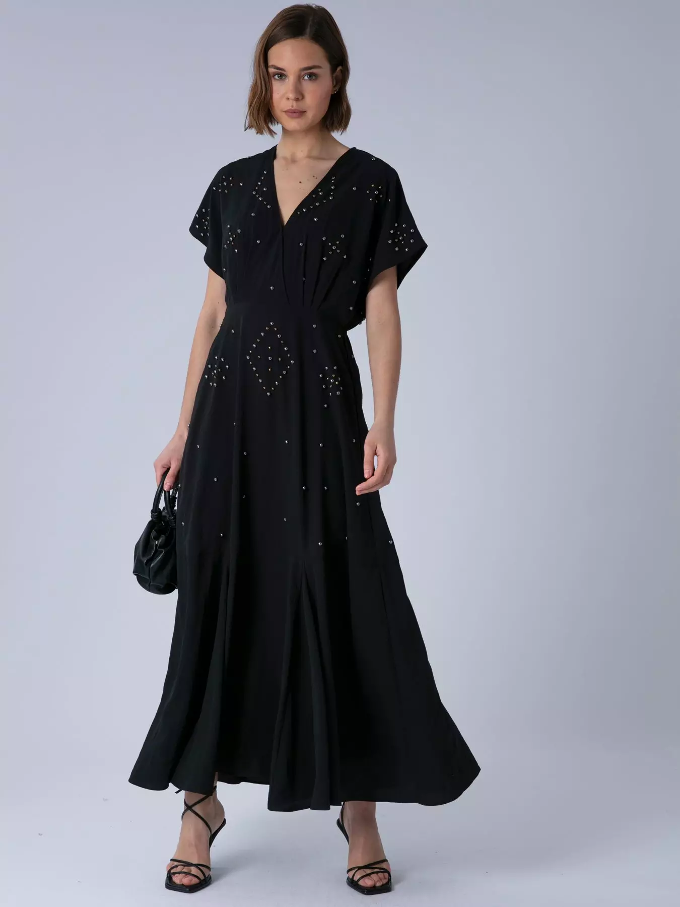 - All-over hand beading catches the light with subtle sparkle