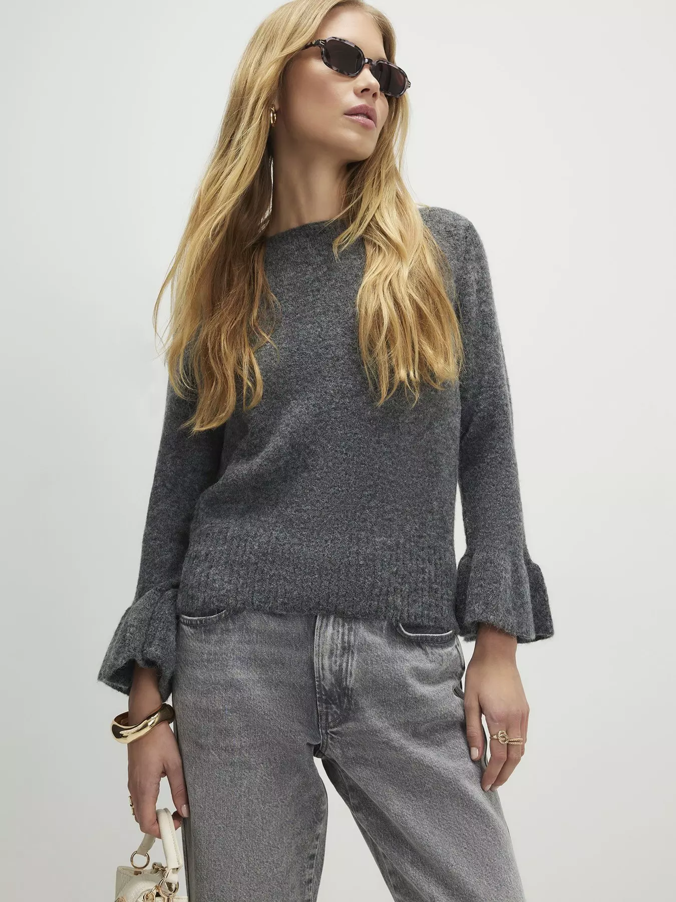 River IslandFrill Cuff Bow Back Jumper- Grey