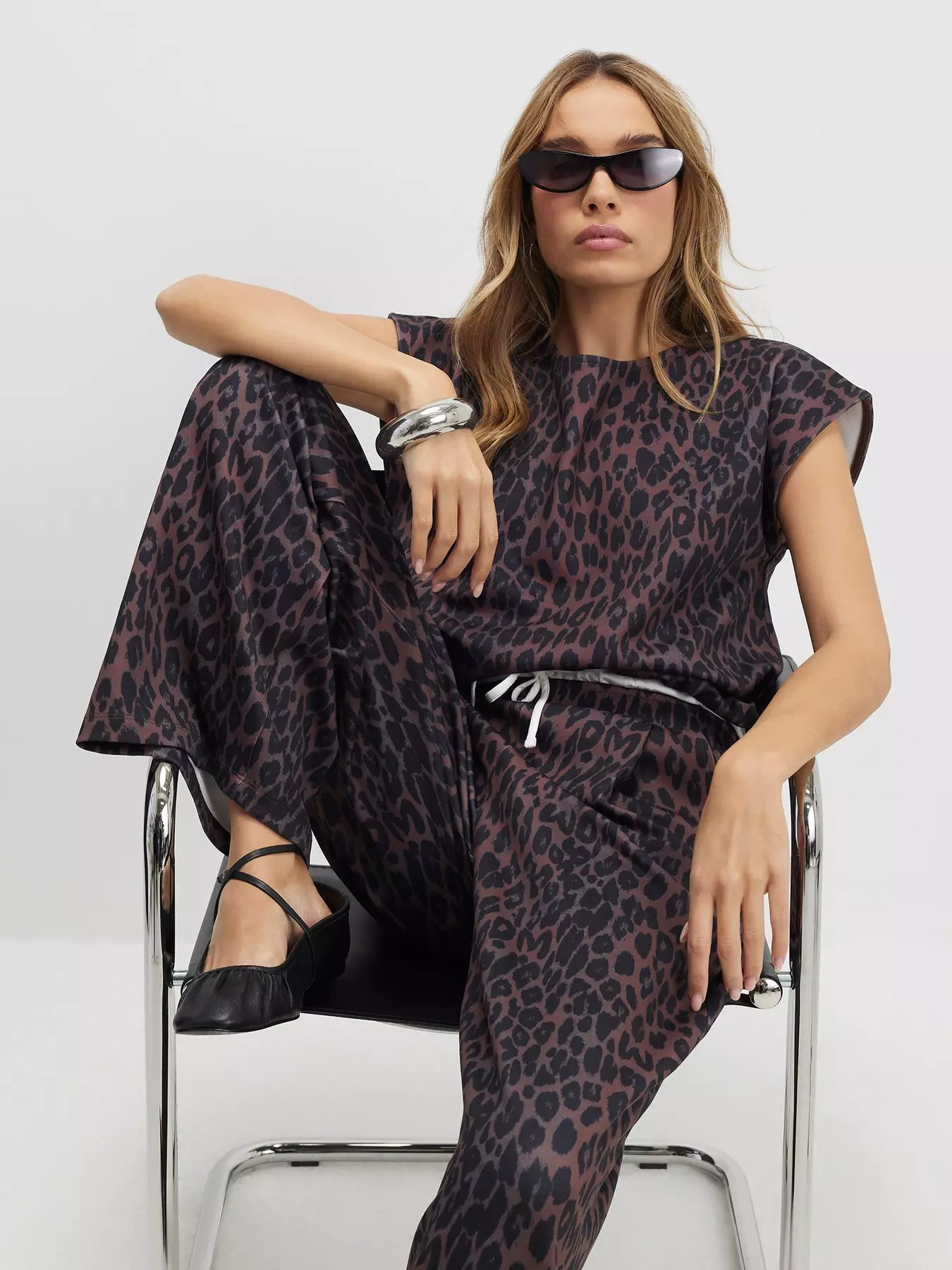 River IslandLeopard Print Tie Side Bubble Hem Top - Black