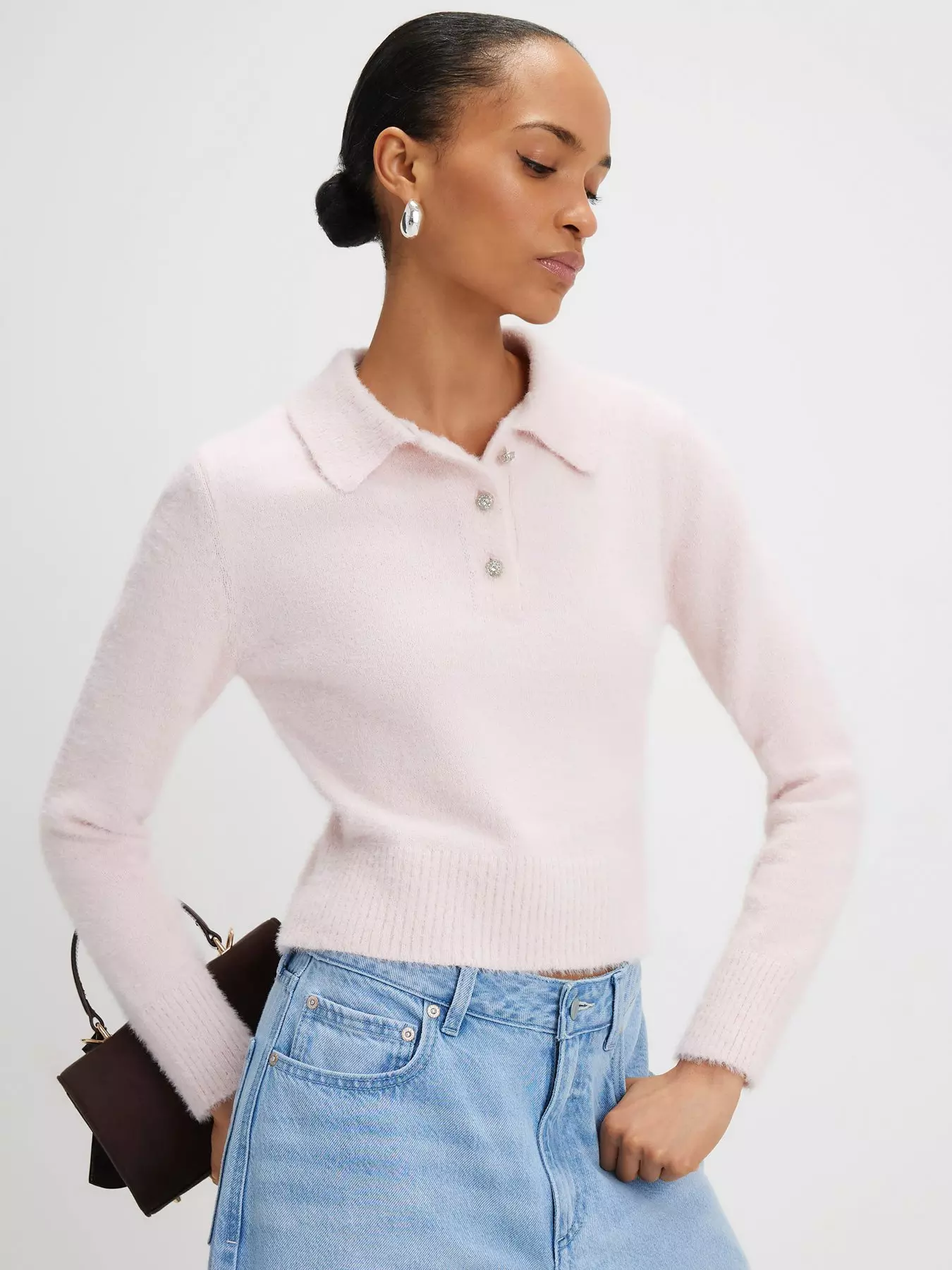 River IslandLong Sleeve Fluffy Polo Top