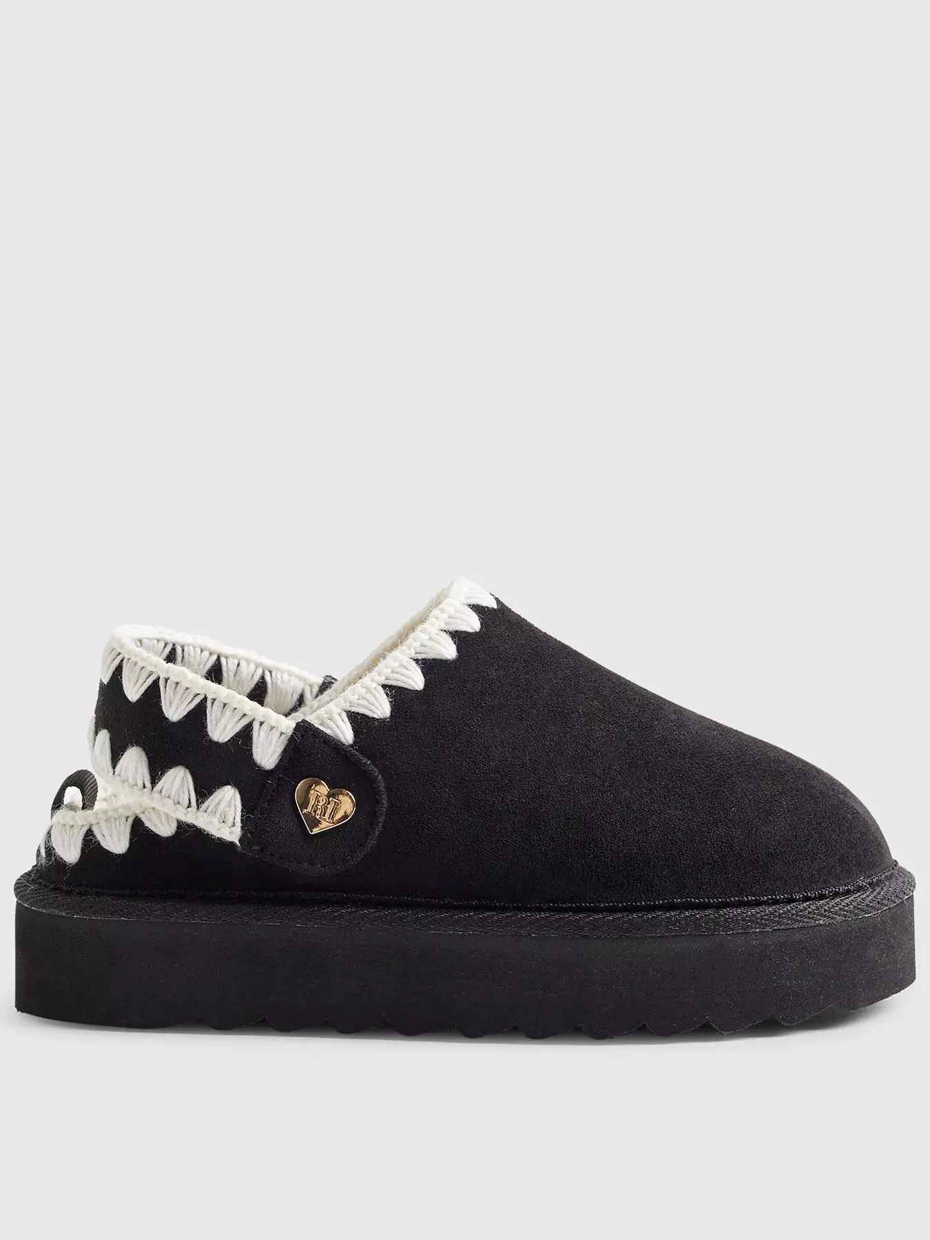 River IslandOlder Girls Whipstitch Strap Slippers - Black