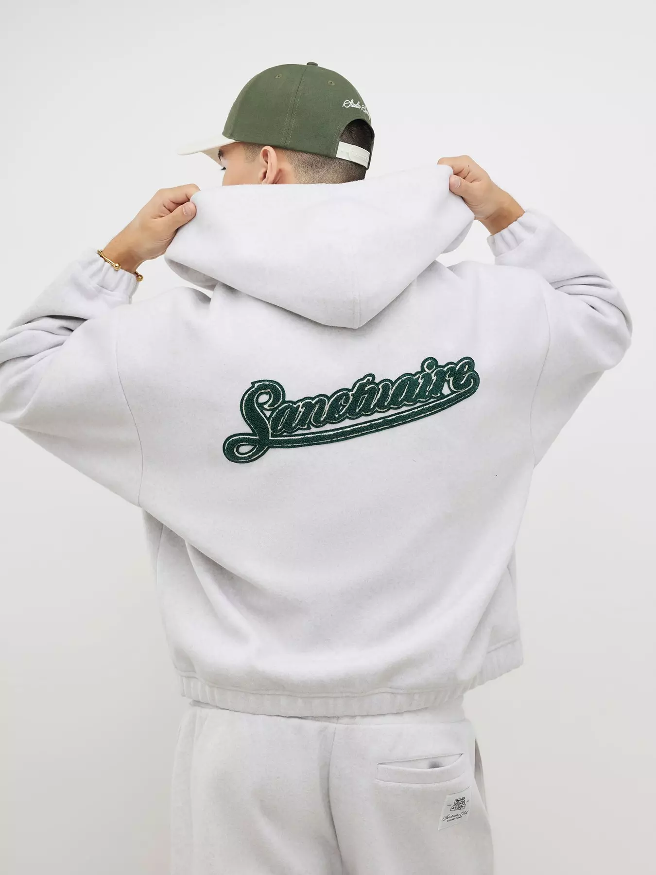 Oversized fit,Embroidered sanctuaire graphic,Zip through,Side slip pockets,Long sleeves,Heavyweight- Oversized fit