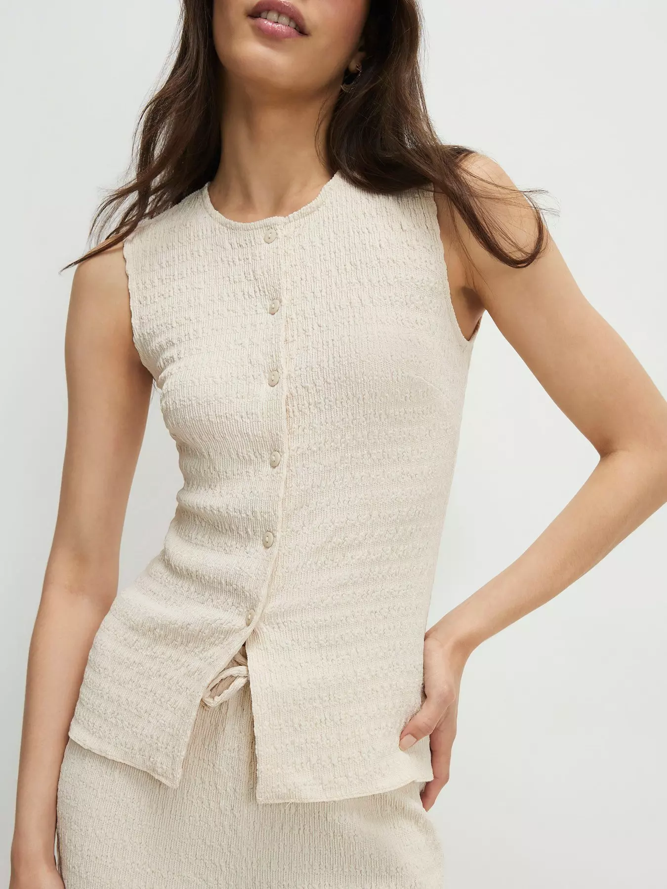 River IslandSleeveless Textured Button Through Top - Beige