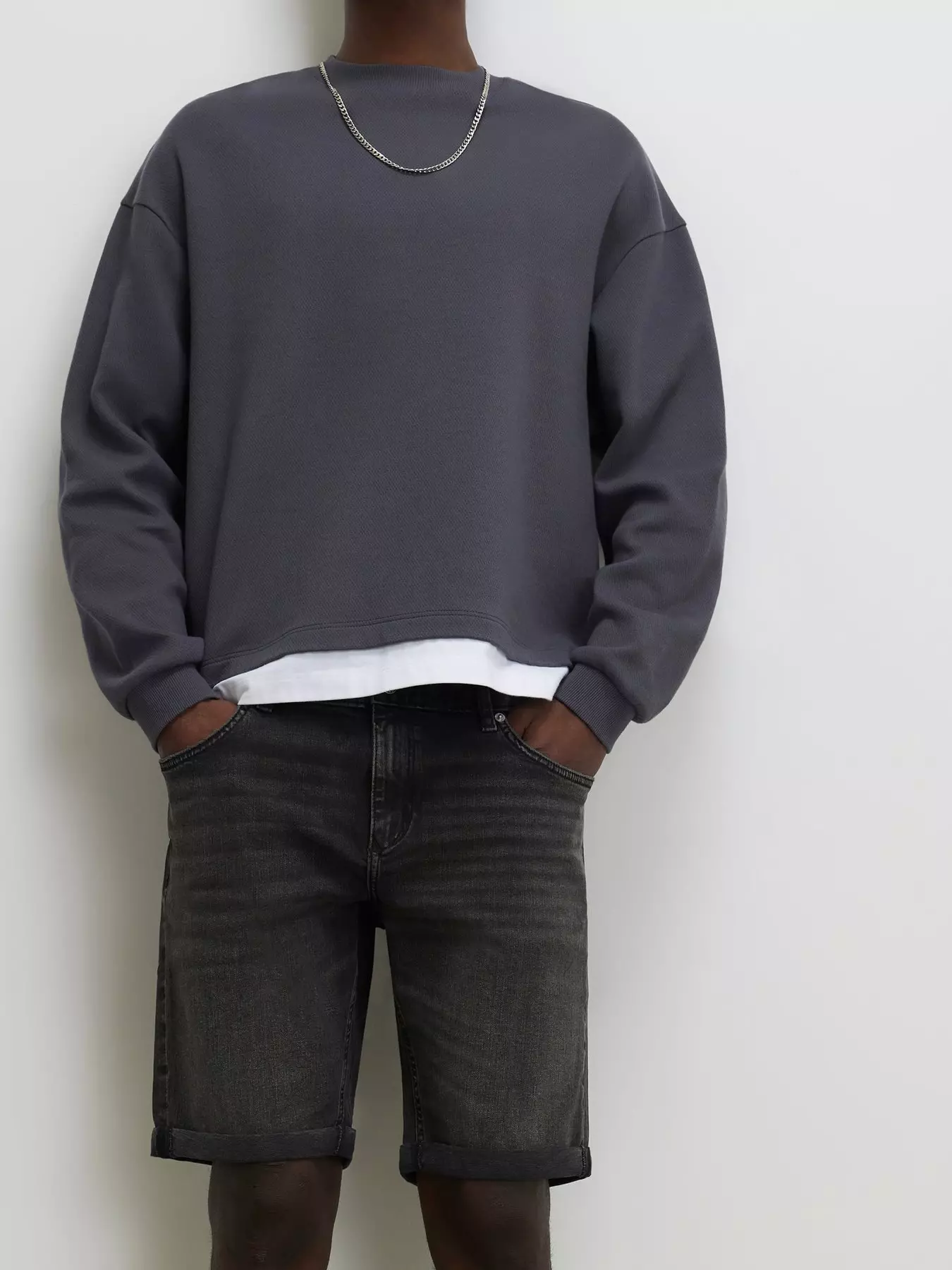 E.A.N: 5 0 6 3 7 0 6 7 1 1 3 2 3River Island Slim Fit Washed Denim Shorts - Black