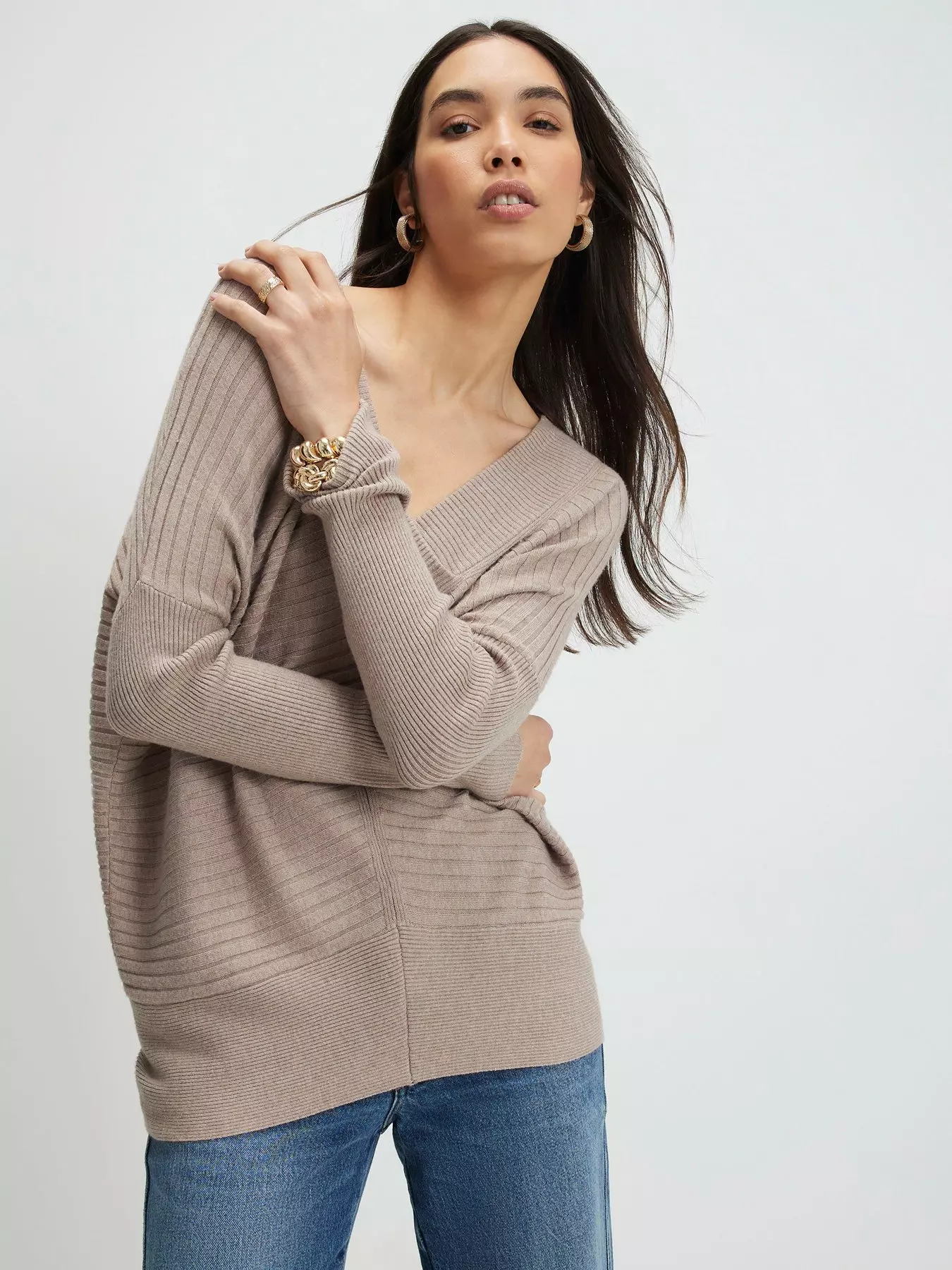 River IslandV Neck Ribbed Jumper - Brown