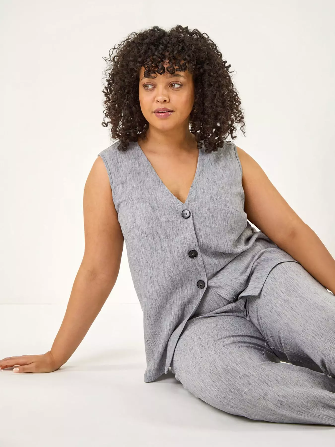 For a touch of sophistication this season look no further than this woven waistcoat with button detail. Cut with a chic V-neckline and in a relaxed fit this sleeveless style is a versatile piece for your wardrobe. Finishing at the hip it's perfect for pairing with trousers and sandals for a laid-back yet stylish look!- Additions: Length Approx. 73cm