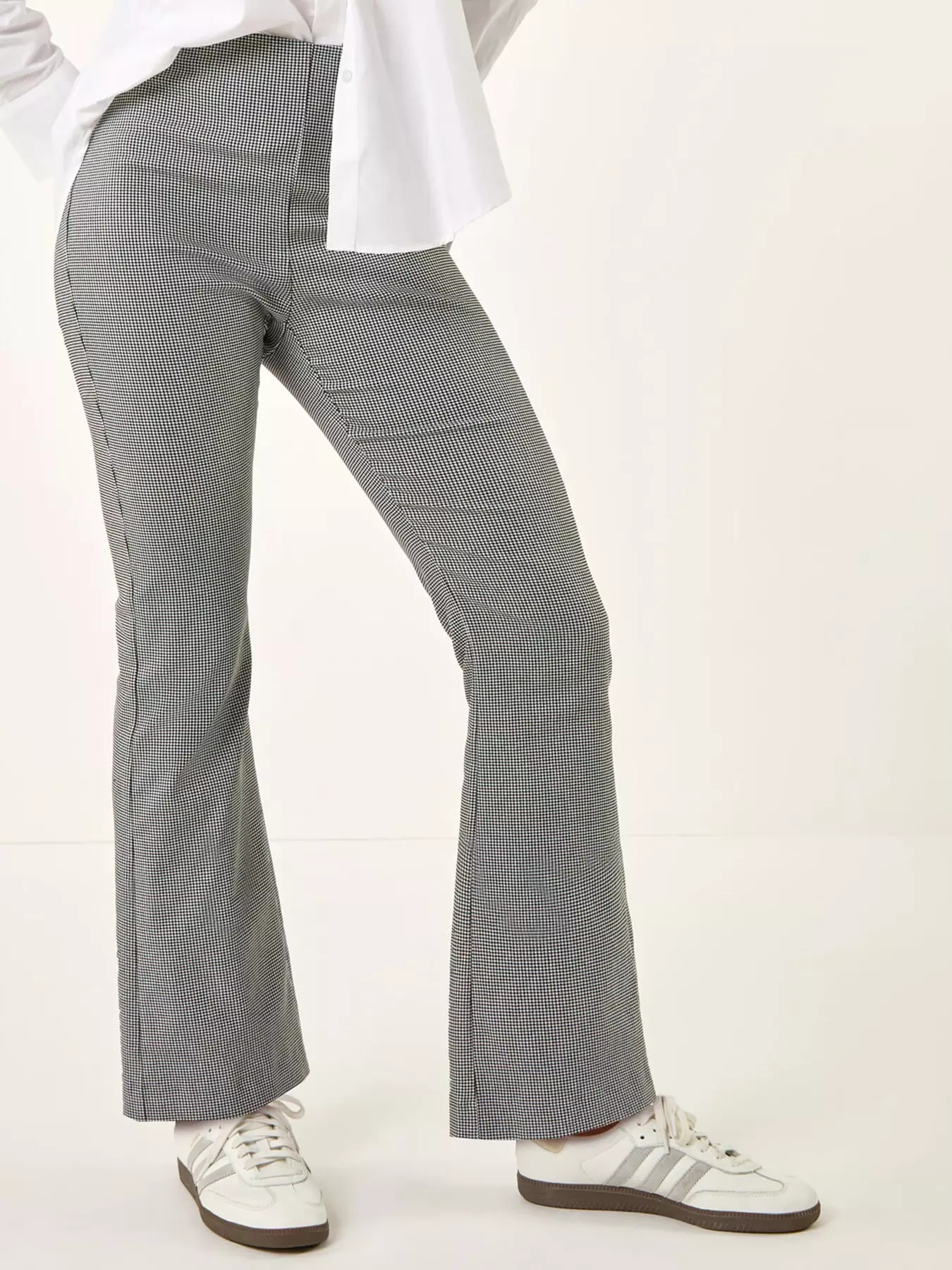 Add a touch of sophistication to your Spring Summer wardrobe with these full length trousers. Crafted from a smooth stretch fabric with a chic mini dogtooth print these trousers feature an elasticated waist for a neat fit ensuring comfort and style. Perfect for pairing with a blouse and jacket for a polished look!- Material Content: 75% Viscose 11% Polyester 10% Polyamide 4% Elastane