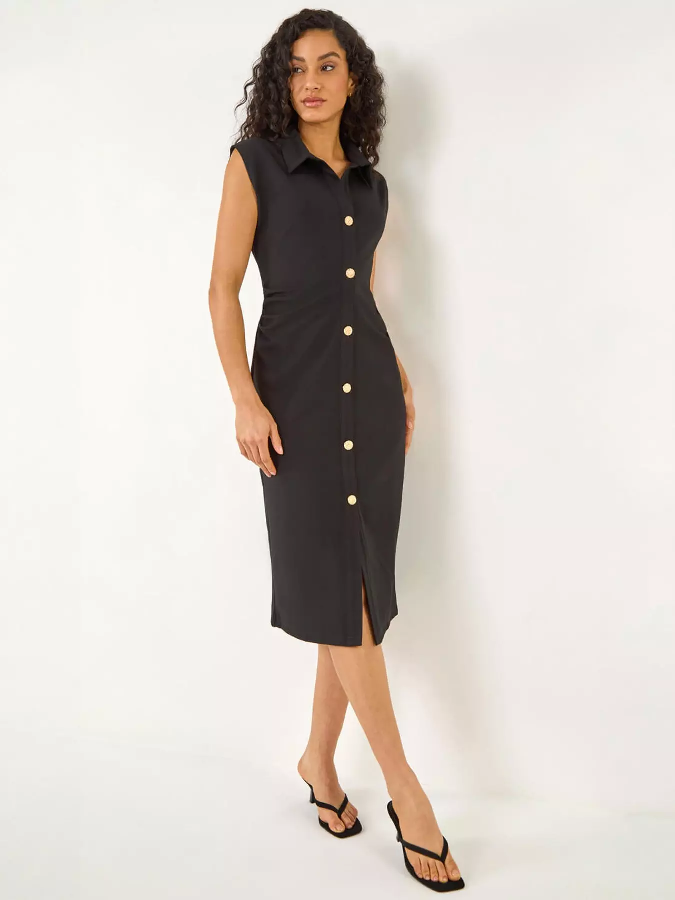 RomanDusk Collared Ribbed Midi Dress