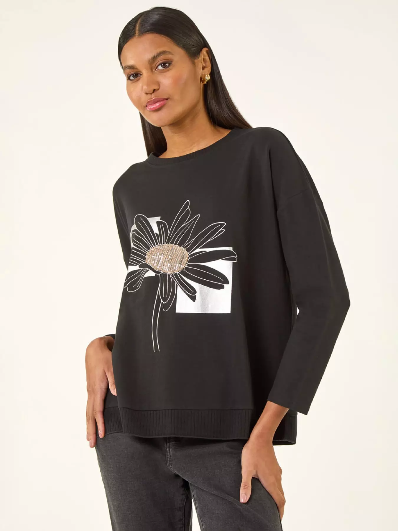 Add a touch of flower power to your Autumn Winter wardrobe with this chic floral print top. Crafted from a cotton stretch fabric this stylish top features a floral print design. The round neckline and long sleeves add a cosy vibe while the top finishes at the hip. Pair with wide-leg jeans and ankle boots for a complete look that's perfect for any casual day out!- Material Content: 95% Cotton 5% Elastane