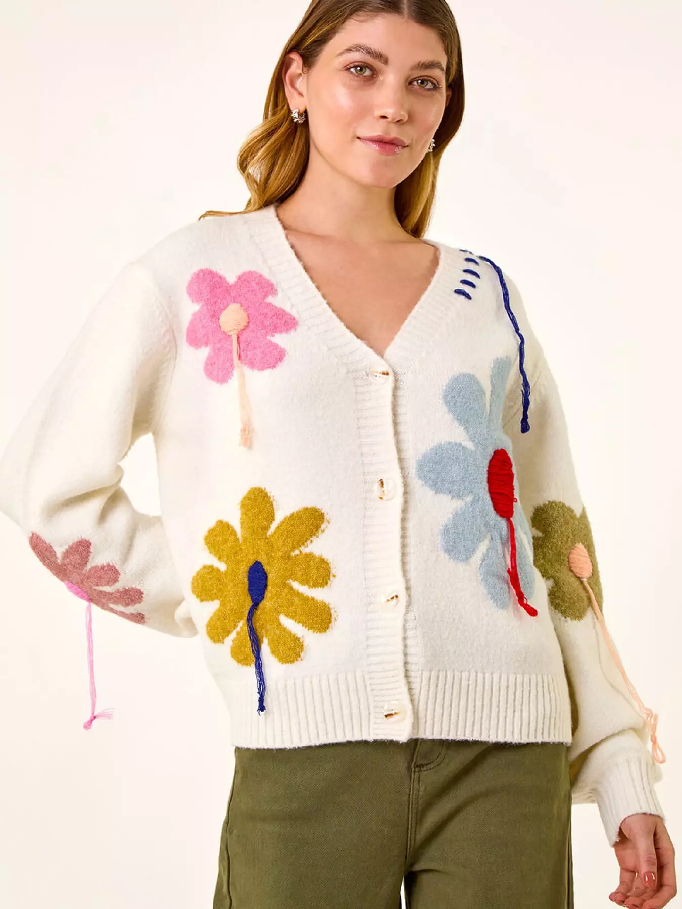 E.A.N: 5 0 6 3 5 6 6 3 6 4 5 0 9Roman Floral Stitch Knit Cardigan - Ivory