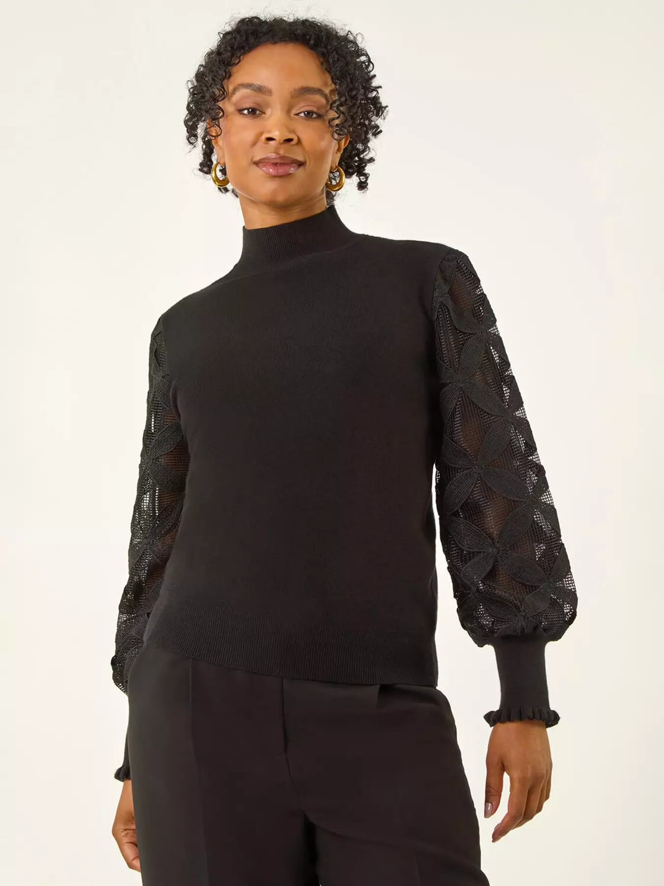 RomanPetite Lace Sleeve Knit Jumper - Black