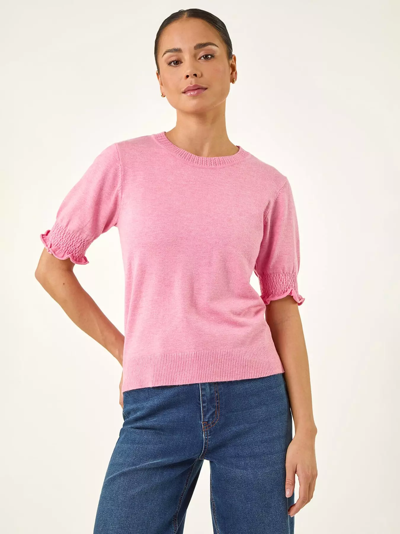 Get ready for a stylish Spring Summer season with this classic Petite knitted top. Effortlessly chic this top features a classic round neck and short sleeves with shirred elastic detail for an added touch of style. The ribbed detail on the hem adds a modern twist while the comfortable knitted fabric ensures all-day wear. Style with a denim jacket and jeggings for a complete trendy outfit!- Material Content: 70% Viscose 30% Polyamide