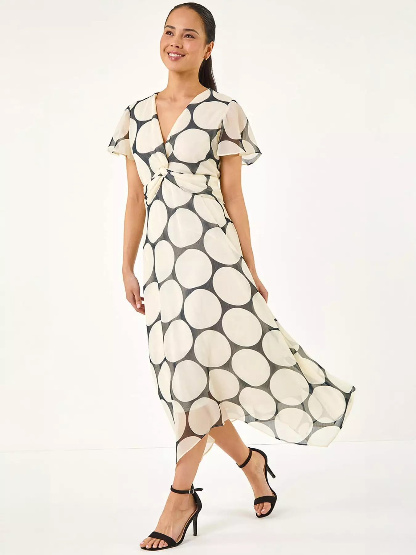 Roman Petite Spot Print Twist Front Dress