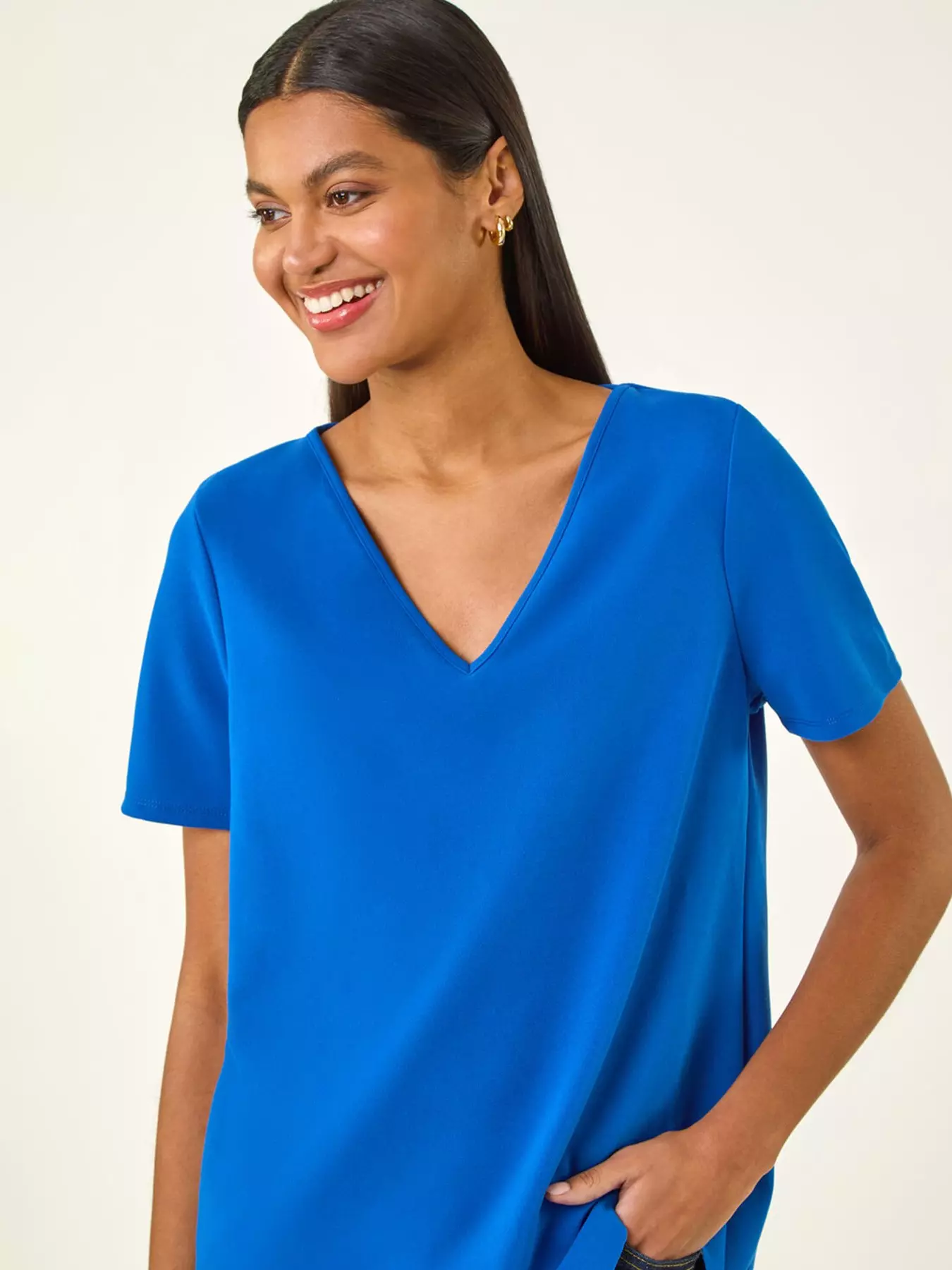 Add a touch of elegance to your everyday attire with this chic scallop hem top. Crafted from a stretchy jersey fabric this top features a flattering v-neckline and cute short sleeves. The scallop hemline detail adds a playful and stylish touch while the top finishes at the hip for a versatile look. Pair with jeans and trainers for a casual yet trendy outfit that's perfect for the Spring/Summer season.- Material Content: 94% Polyester 6% Elastane
