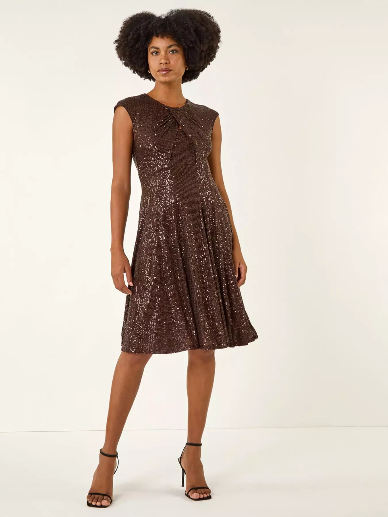 Roman Sequin Twist Front Stretch Dress - Brown