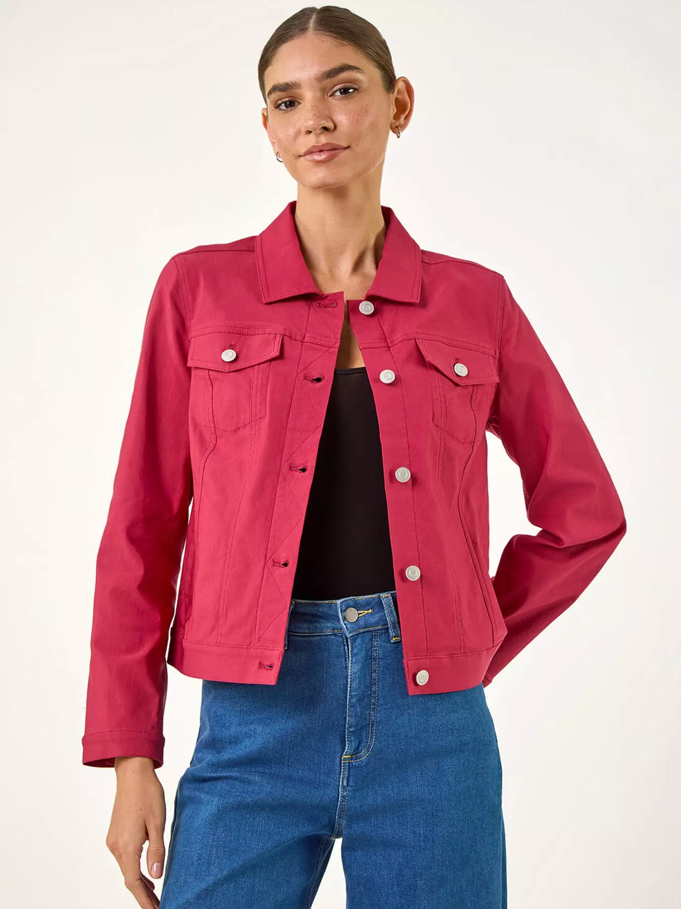 A classic jacket style with a comfortable twist this piece is crafted from our favourite bengaline fabric. Boasting all the details you'd expect from a jean jacket: a smart collar patch pockets and fully open button front this jacket is finished with full length sleeves with cuffs. Designed in an on trend colour this can be worn styled in a multitude of ways; with printed dresses denim shorts or the matching skirts - wear this with ease throughout Spring & Summer!- Material Content: 76% Viscose 21% Polyamide 3% Elastane