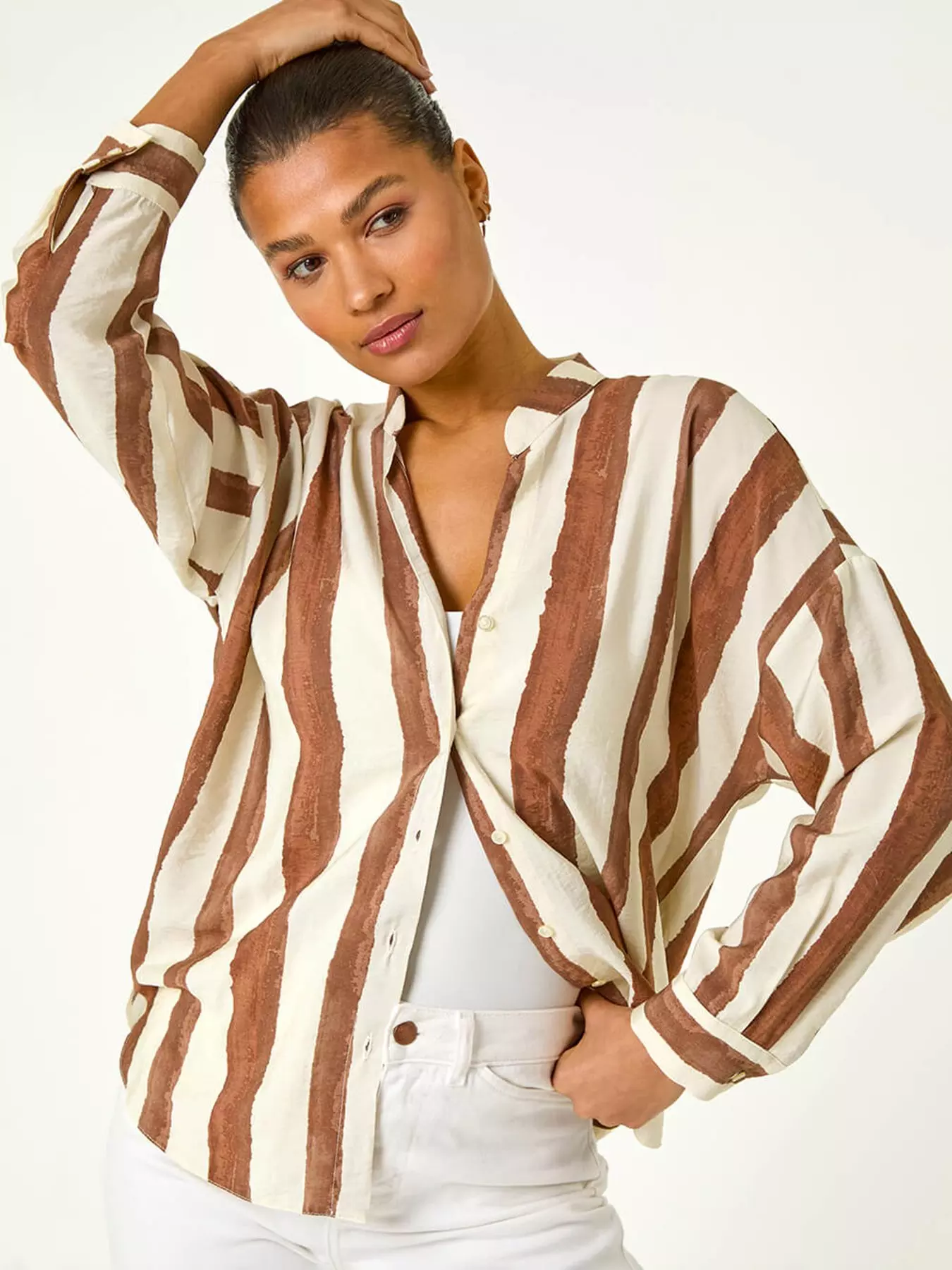 E.A.N: 5 0 6 3 5 6 6 1 8 0 8 4 0Roman Stripe Print Relaxed Button Shirt - Brown