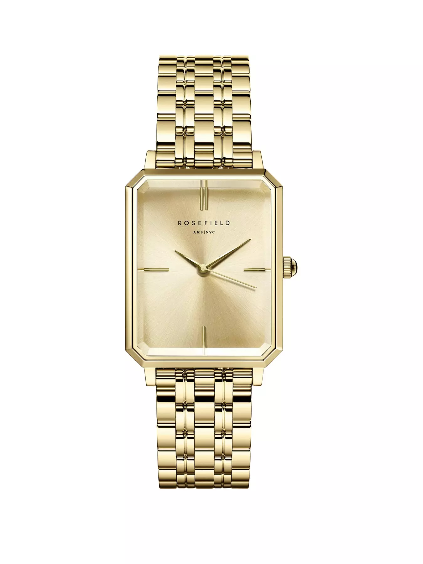 Rosefield OCTAGON ladies gold IP ladies watch with gold dial and gold IP stainless steel case and bracelet- 24Hr Display: N