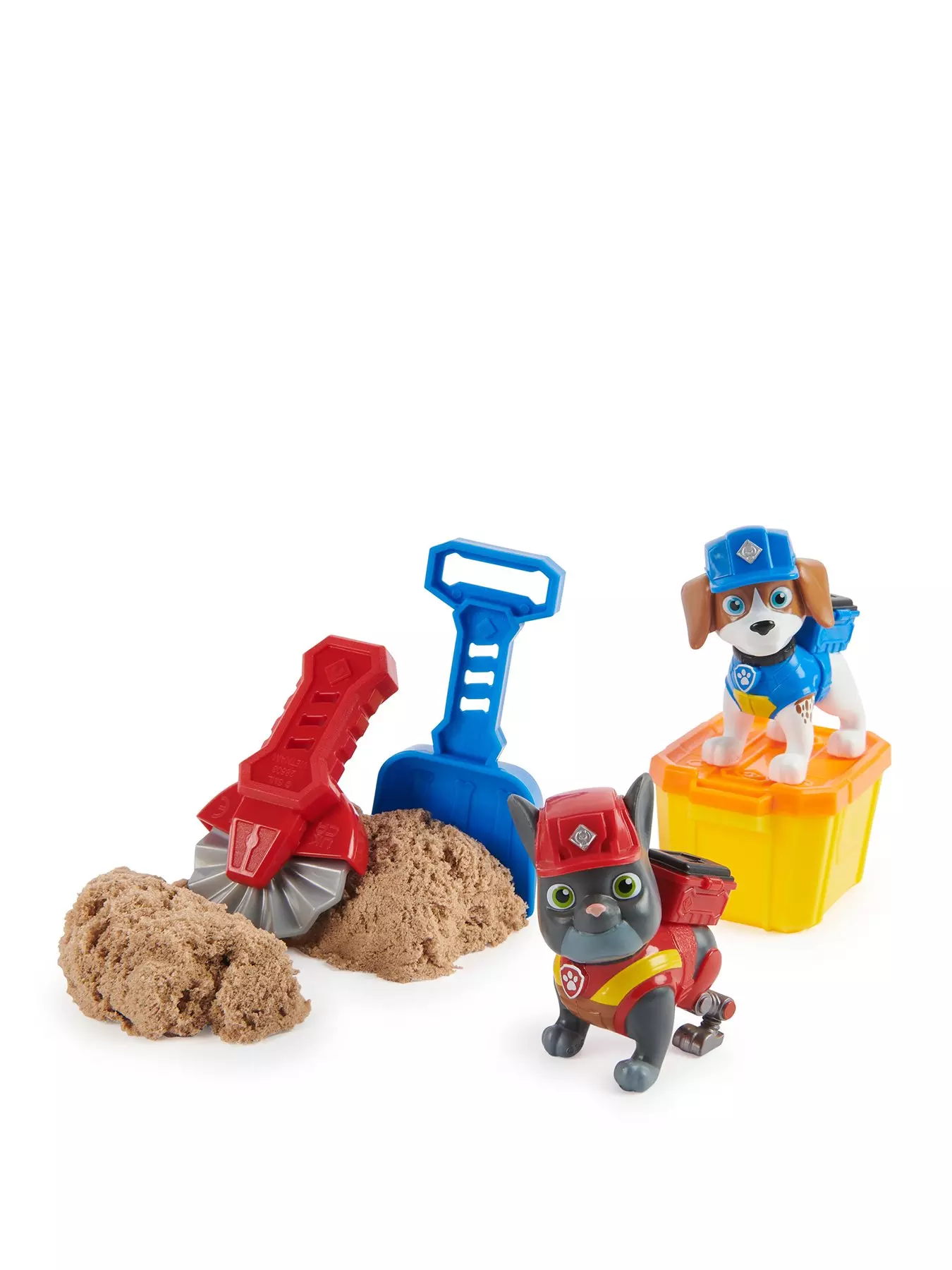Charger and Wheeler, dressed in their Rubble and Crew construction uniforms, are ready for adventure. Your little R&C fan can now team up with these sweet character as they embark on imaginative building escapades!KINETIC BUILD-IT-SAND