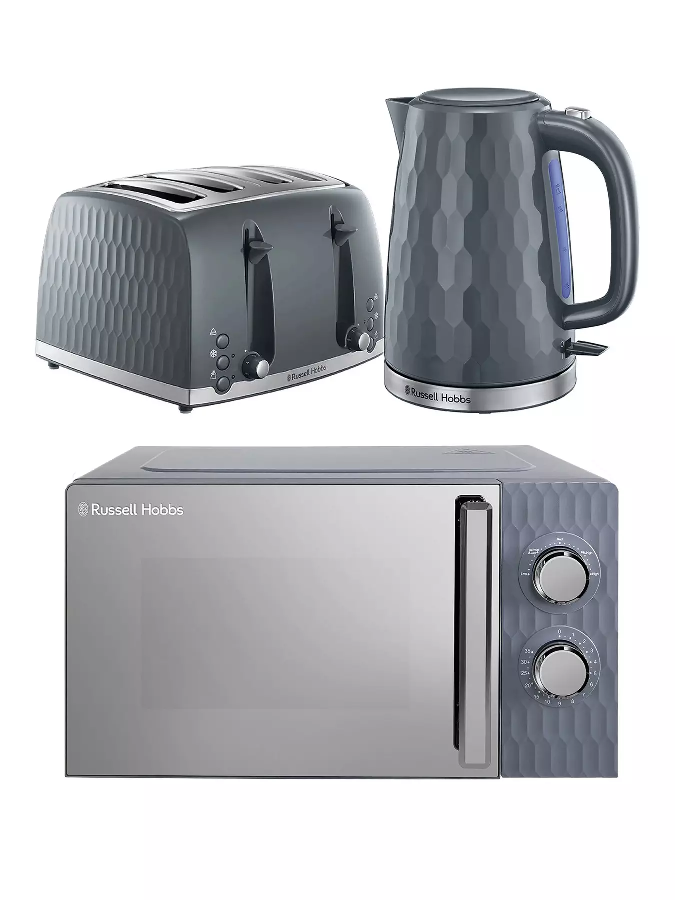 Russell HobbsHoneycomb Bundle - Kettle, 4 Slice Toaster and Microwave- Grey