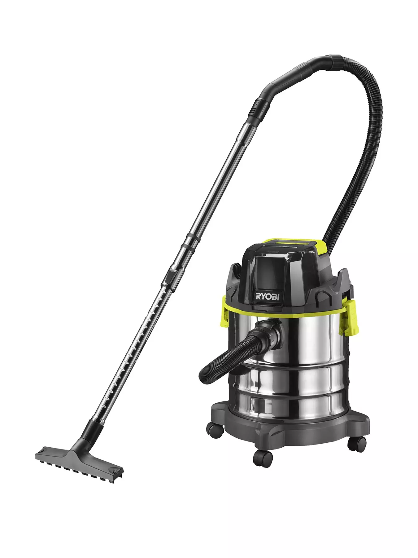 As part of the Ryobi 18V ONE+ system of over 200 cordless tools for the home, garden, automotive, crafting and much more, the Ryobi 18V ONE+ R18WDV-0 Wet & Dry Vacuum is perfect for clearing up debris and wet spills around the workshop, garage, home and much more!Designed with portability in mind, the ONE+ wet and dry vacuum cleaner offers impressive performance with 82 Air Watts of suction which can easily be used for water, wet debris, dry debris or even as a workshop blower. The 18L capacity stainless steel body provides a lightweight, compact and sturdy base which is ideally suited to any workshop environment. Caster wheels ensure easy portability and storage while the innovative onboard tool storage allows clever storage for the supplied crevice and brush tools. Also supplied with a universal power tool adaptor which is compatible with dust extraction ports on all Ryobi 18V ONE+ tools as well as other brands.