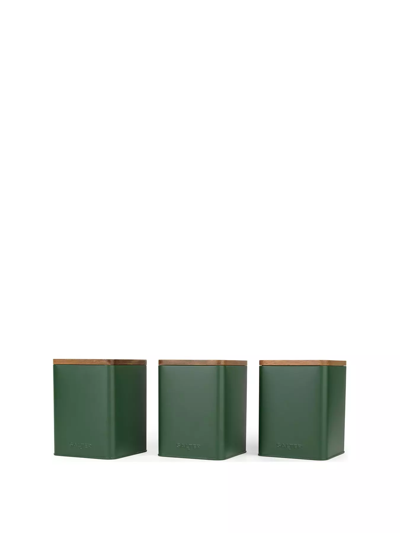 Bring a modern look to your kitchen with the Salter Toronto 3-Piece Canister Set. This set includes canisters for tea, coffee, and sugar storage, crafted with a stylish green powder-coated matt finish for a more contemporary look. Plus, with the acacia wood lids, this set is sure to be a stylish addition to any kitchen counter. Not only do the containers help to keep contents fresher for longer, but these canisters are designed to be easy to clean and take up minimal counter space.- Depth: 11.5 CM