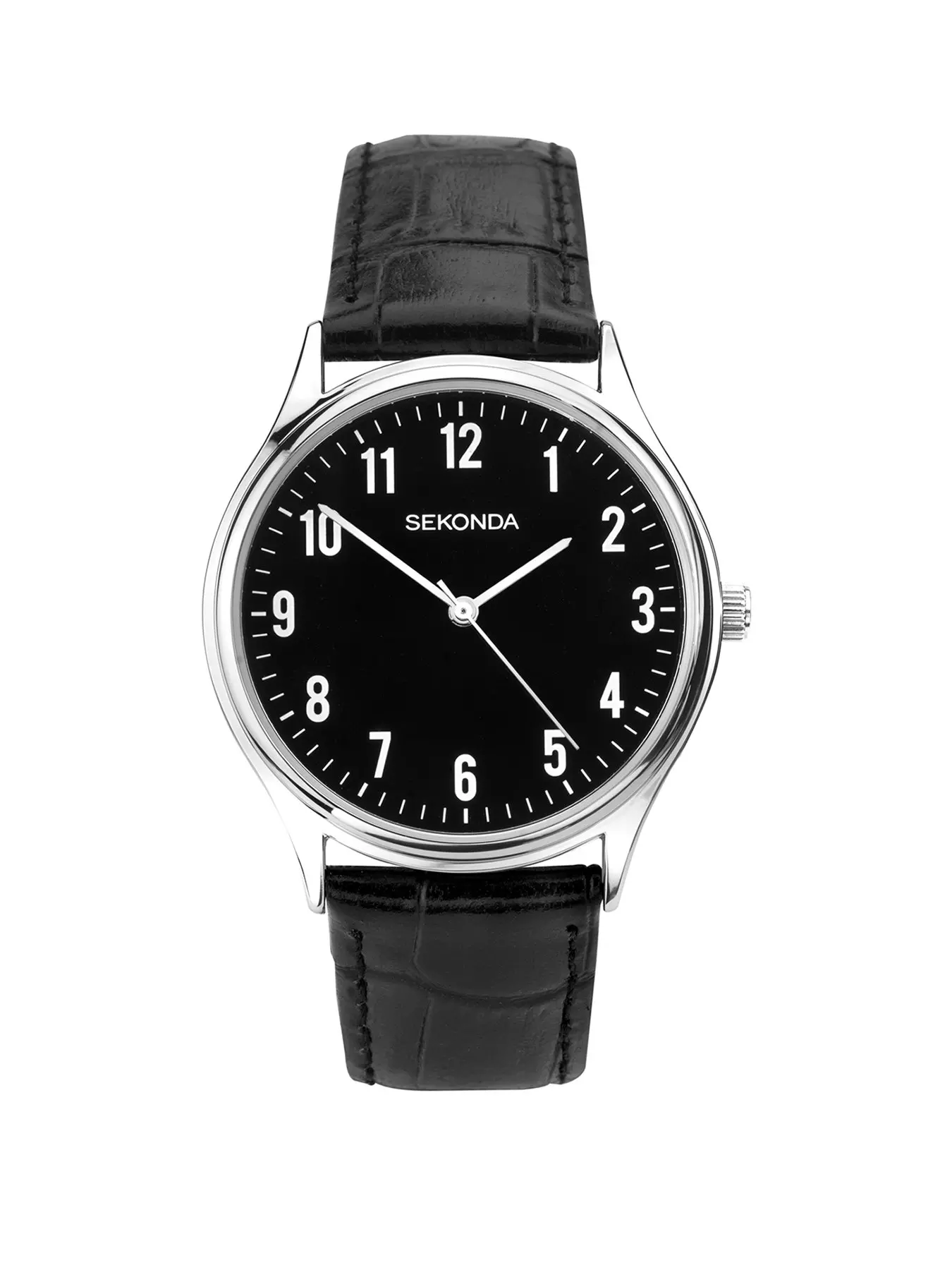 SekondaMen's Easy Reader Black Leather Upper Strap with Black Dial Watch