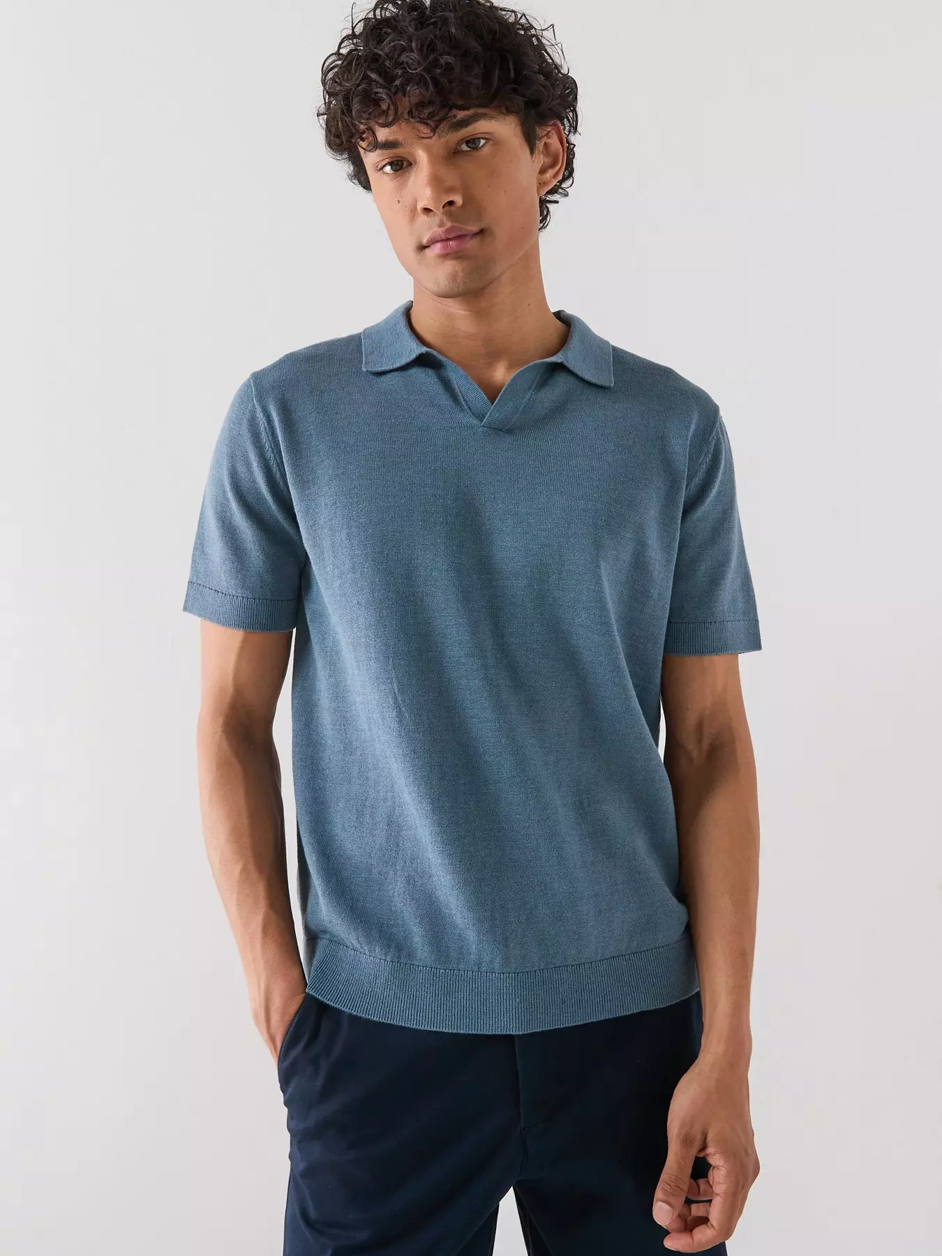 SelectedSelected Mattis Linen Blend Open Collar Polo Shirt