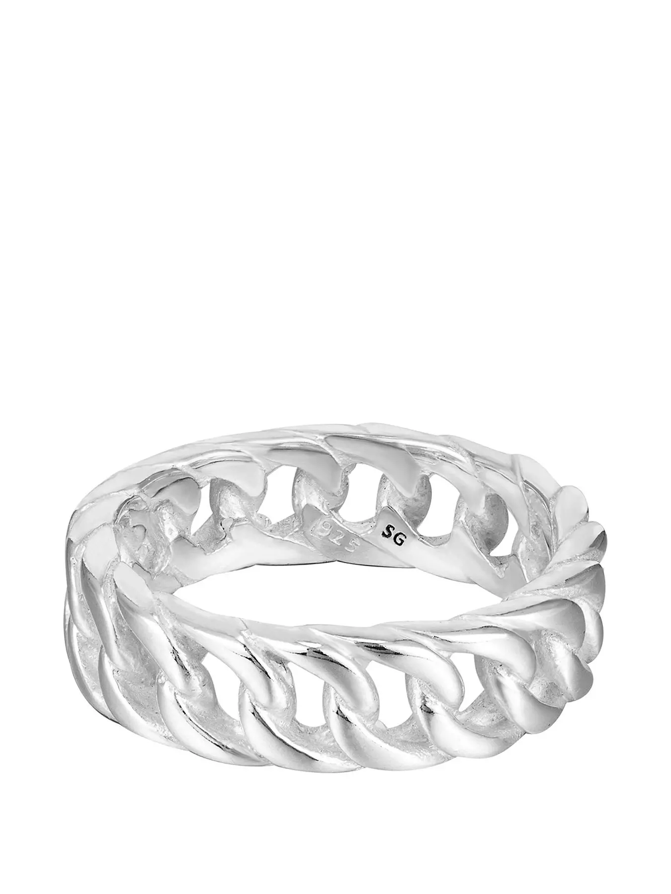 Curb chain style ring. Available in sterling silver (.925) or 18ct yellow gold vermeil over sterling silver. Band height measure 6.2mm. Ring is available in sizes J-Y. Made using sterling silver (.925) and then finished with a clear e-coating to add longevity to each piece. Gift ready with our branded cotton gift bag included.- Metal Type: Silver