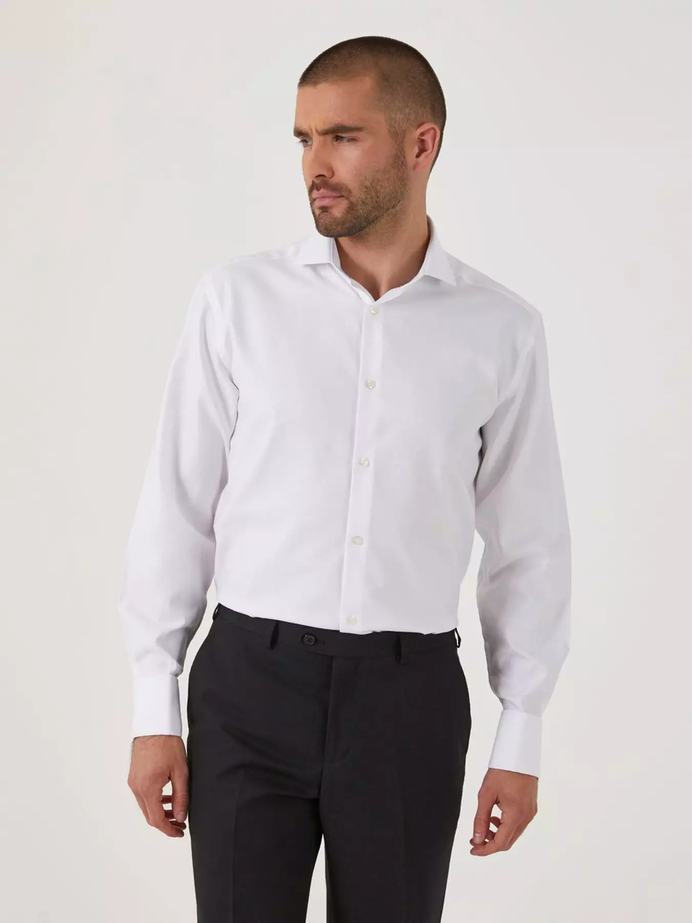 SkopesPremium Tailored Fit Dobby Long Sleeve Shirt - White