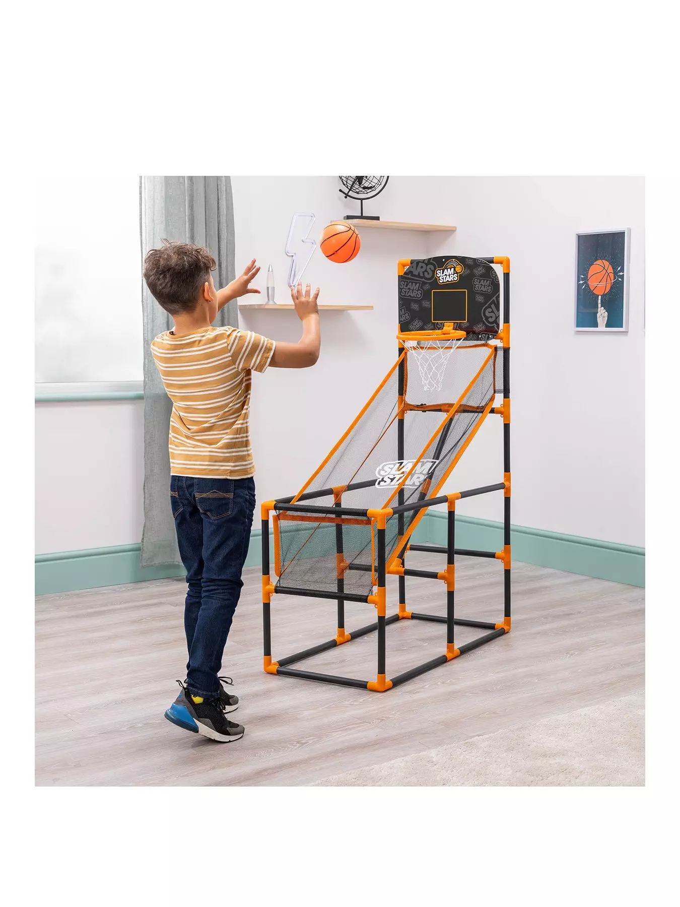 E.A.N: 5 0 3 1 4 7 0 2 5 6 9 9 9Forget the rain - bring the excitement and skill of the court right into your home with the Slam Stars Hoop Indoor Basketball Game!
