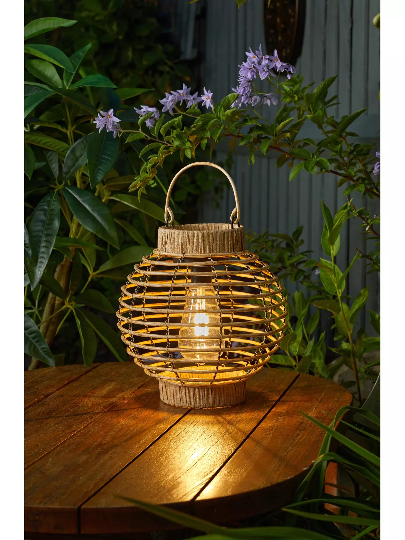 Stylish rattan lanternAutomatically illuminates at dusk