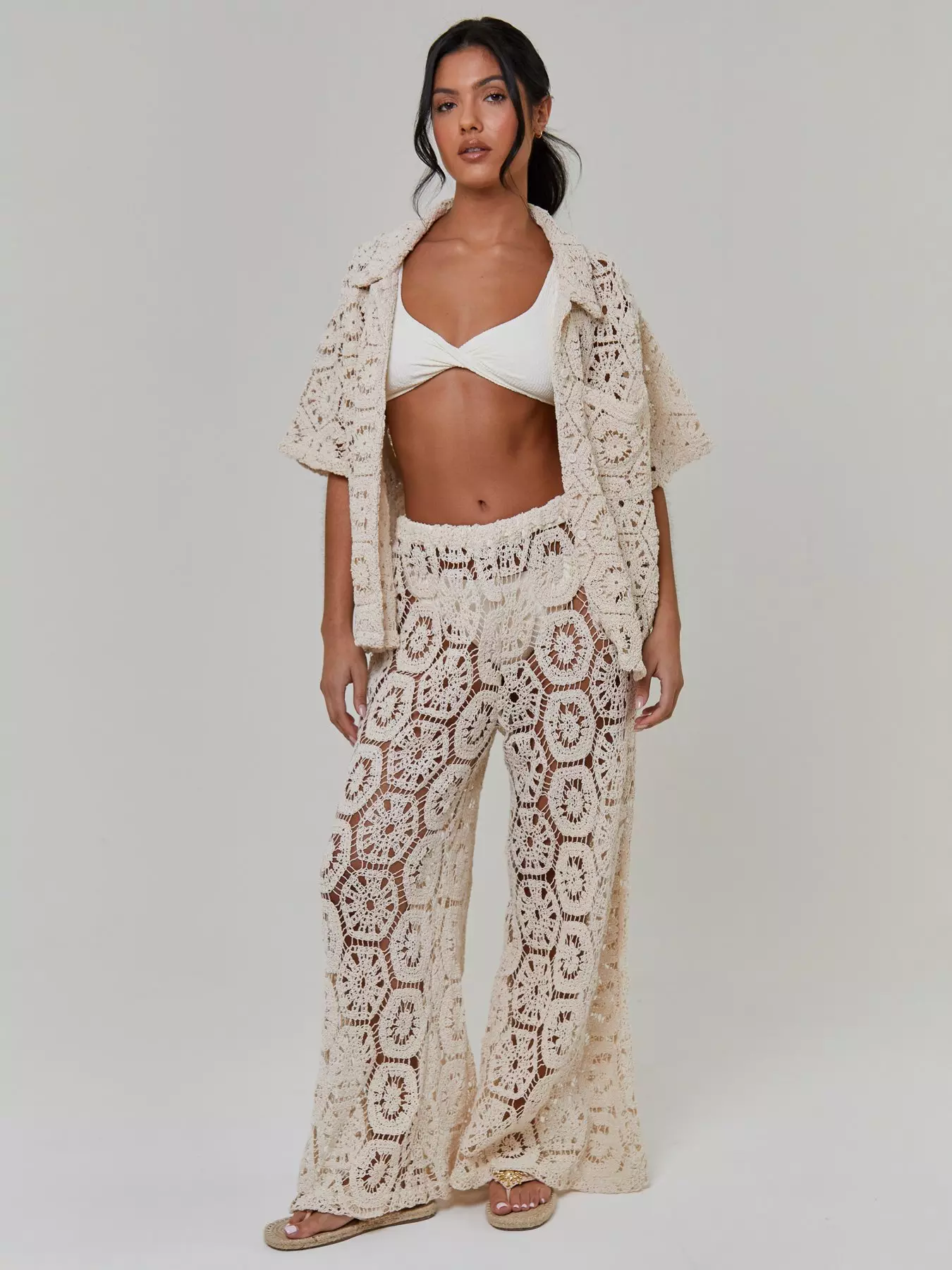 South Beach Crochet Wide Leg Trousers - Cream