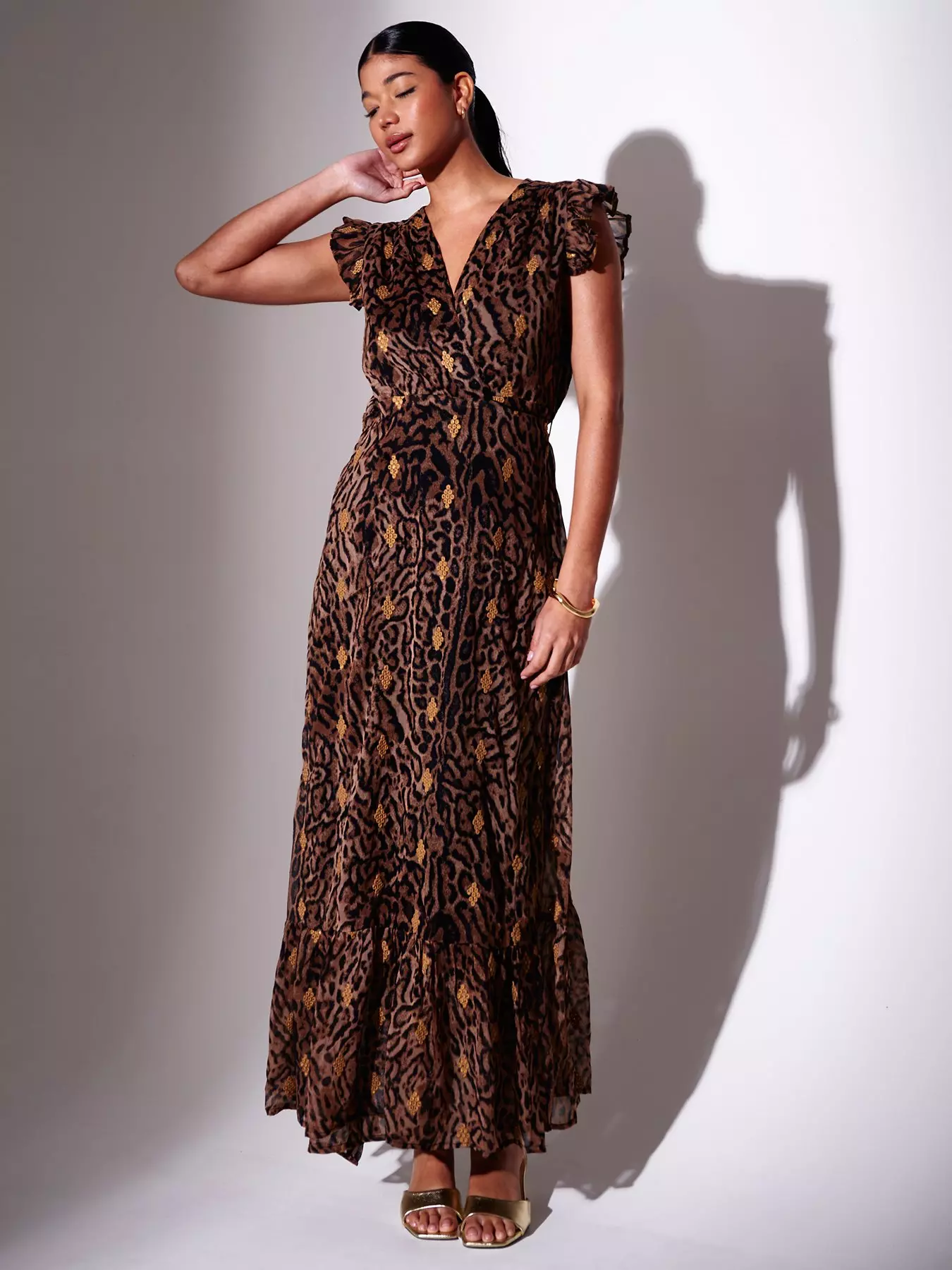 South BeachV-Neck Wrap Sequin Embroidered Maxi Dress - Leopard Print