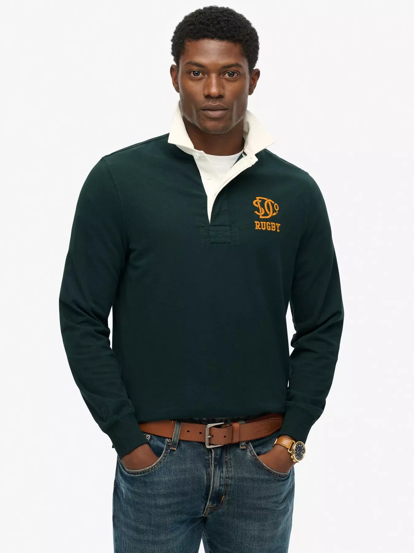 Relaxed fit - the classic Superdry fit. Not too slim, not too loose, just right. Go for your normal size. Rugby collar with three-button fastening. Long sleeves. Ribbed cuffs. Split side hem. Embroidered Superdry logo. Signature Superdry patch on cuff. We have taken the classic silhouette of rugby-style tops and created a statement piece to accompany your casual wardrobe. The Vintage Athletic Stripe Rugby Top is a vintage icon which is a callback to the vintage legacy of rugby, a callback to both British sport and American adaptation telling a story with your timeless style. Crafted with a sumptuously soft feel and a comfortably relaxed shape for effortless confidence all season long.- Material Content: 100% Cotton