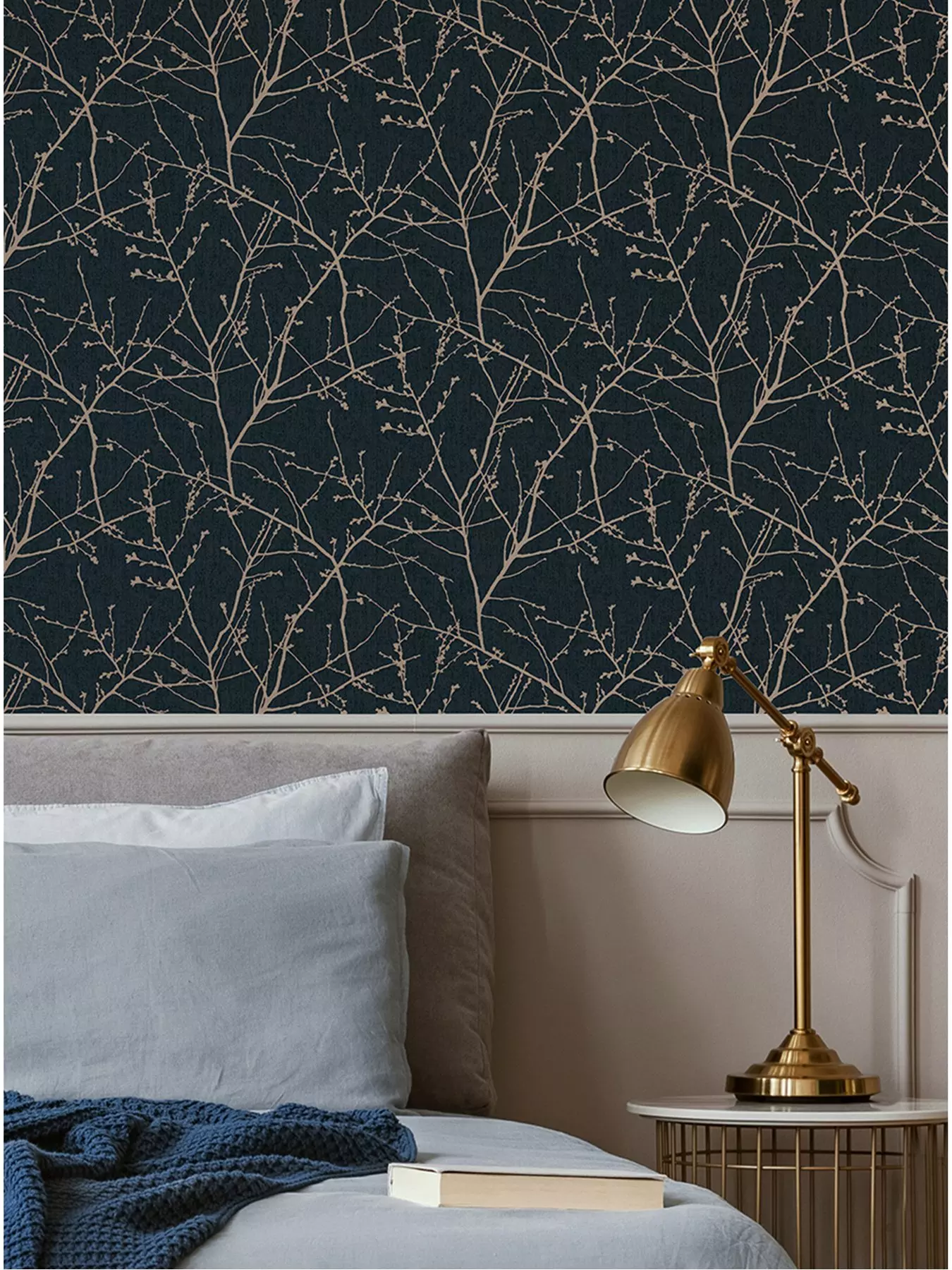 Flaunting a striking look that’s equal parts elegant and contemporary, Innocence is a beautiful wallpaper that can create a distinctive look in any room.The gorgeous navy palette is enhanced wonderfully by a delicate calico fabric effect, along with a metallic sprig design that sweeps through to add a hint of texture. Each of the individual aspects work in harmony for a stunning finish that’s perfect as the focal point of a feature wall, yet still subtle enough to hang around the whole room.