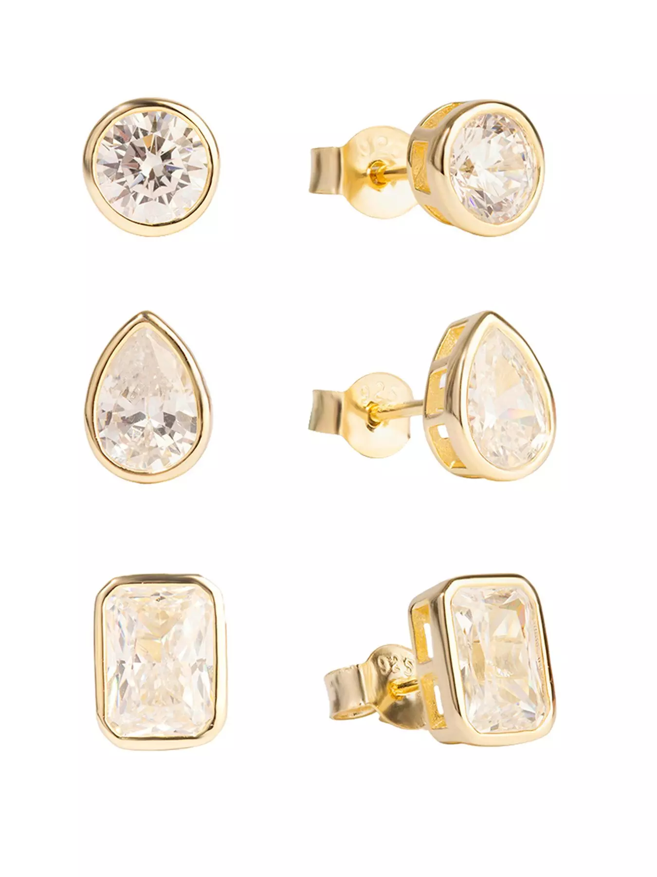 - Gold Plated Sterling Silver Multi Shape CZ Set Rub Over Stud Set