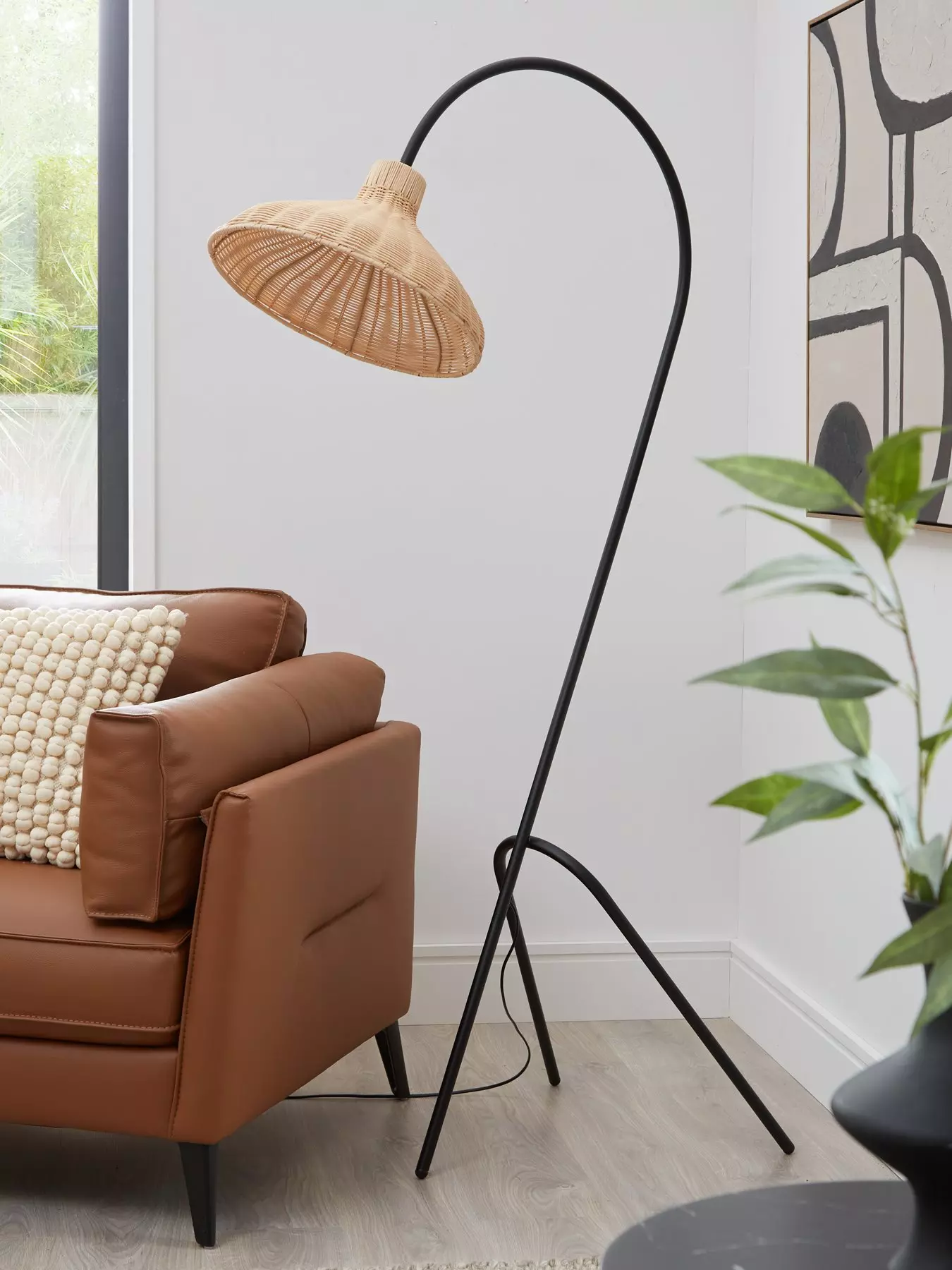 Very Home Arched Floor Lamp with Rattan Shade in Black - 165 cm
