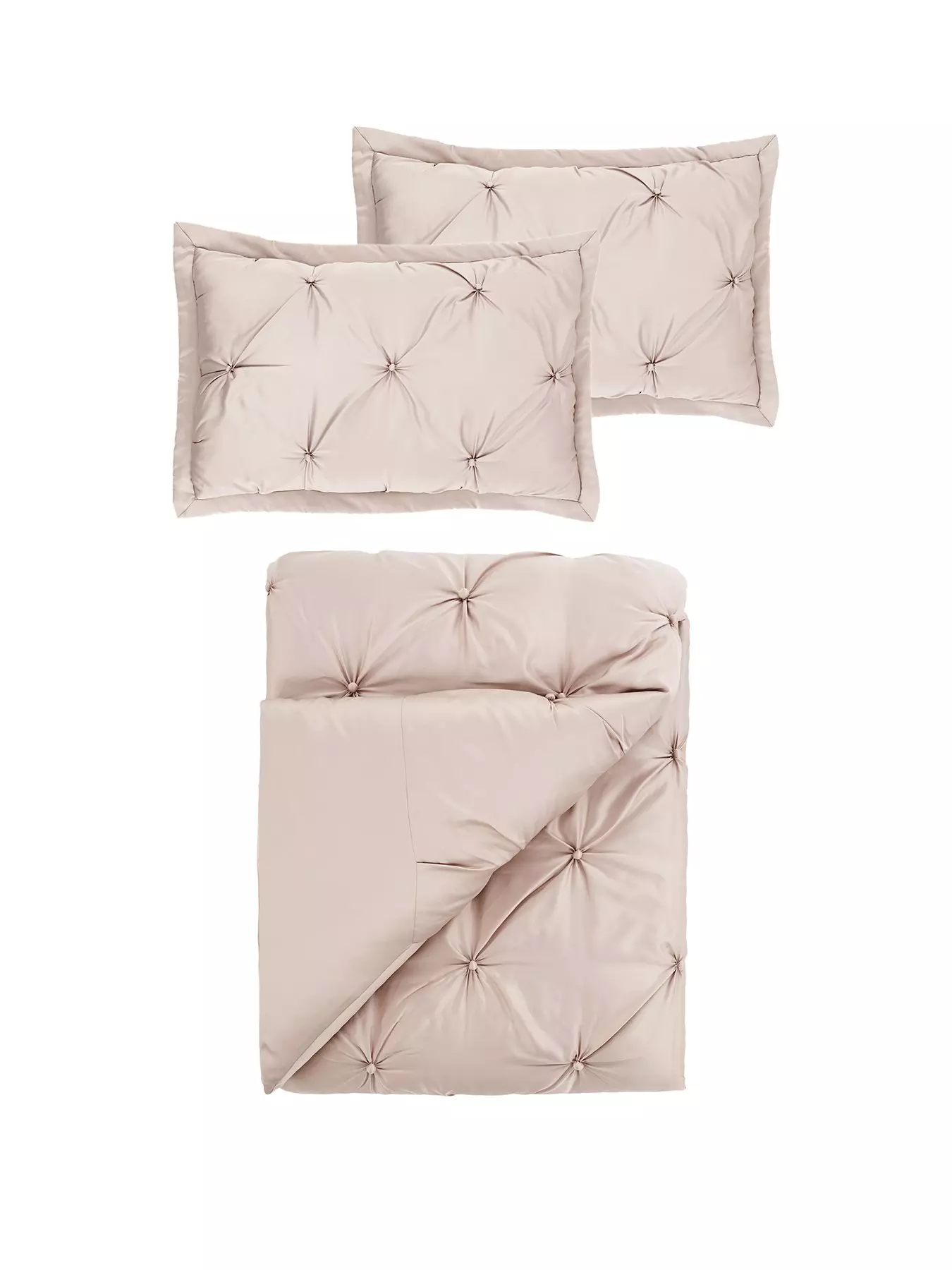 In matt-satin, all 3 pieces feature a stunning pleated design and button detailing designed to complement the jacquard duvet cover and pillowcase set, available separately (see item number MCWKY). The sumptuous style isn’t difficult to look after though, it’s all machine washable, saving you precious time and effort.