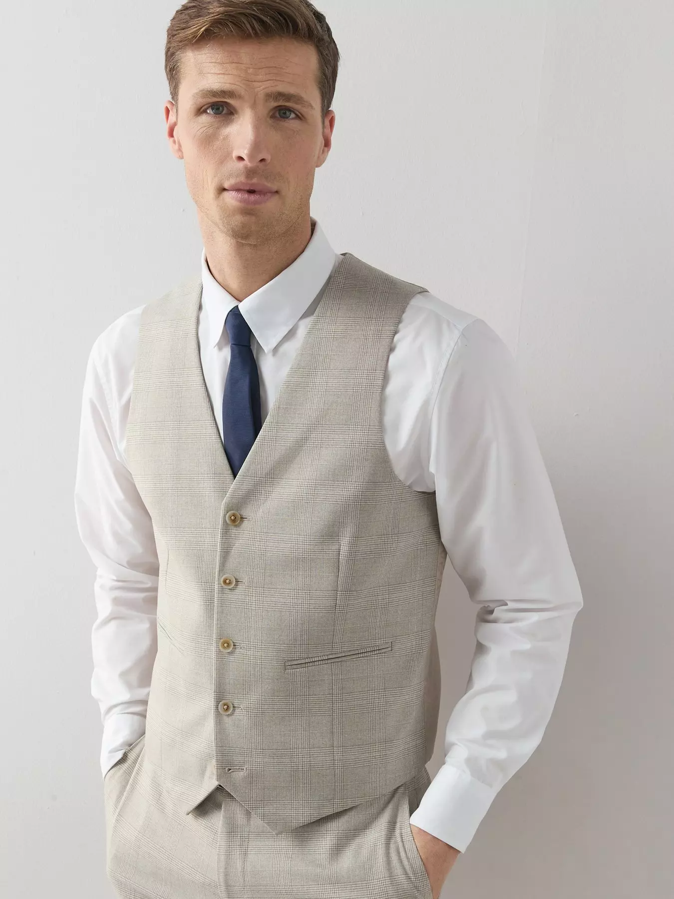 The Very CollectionChecked Waistcoat - Stone