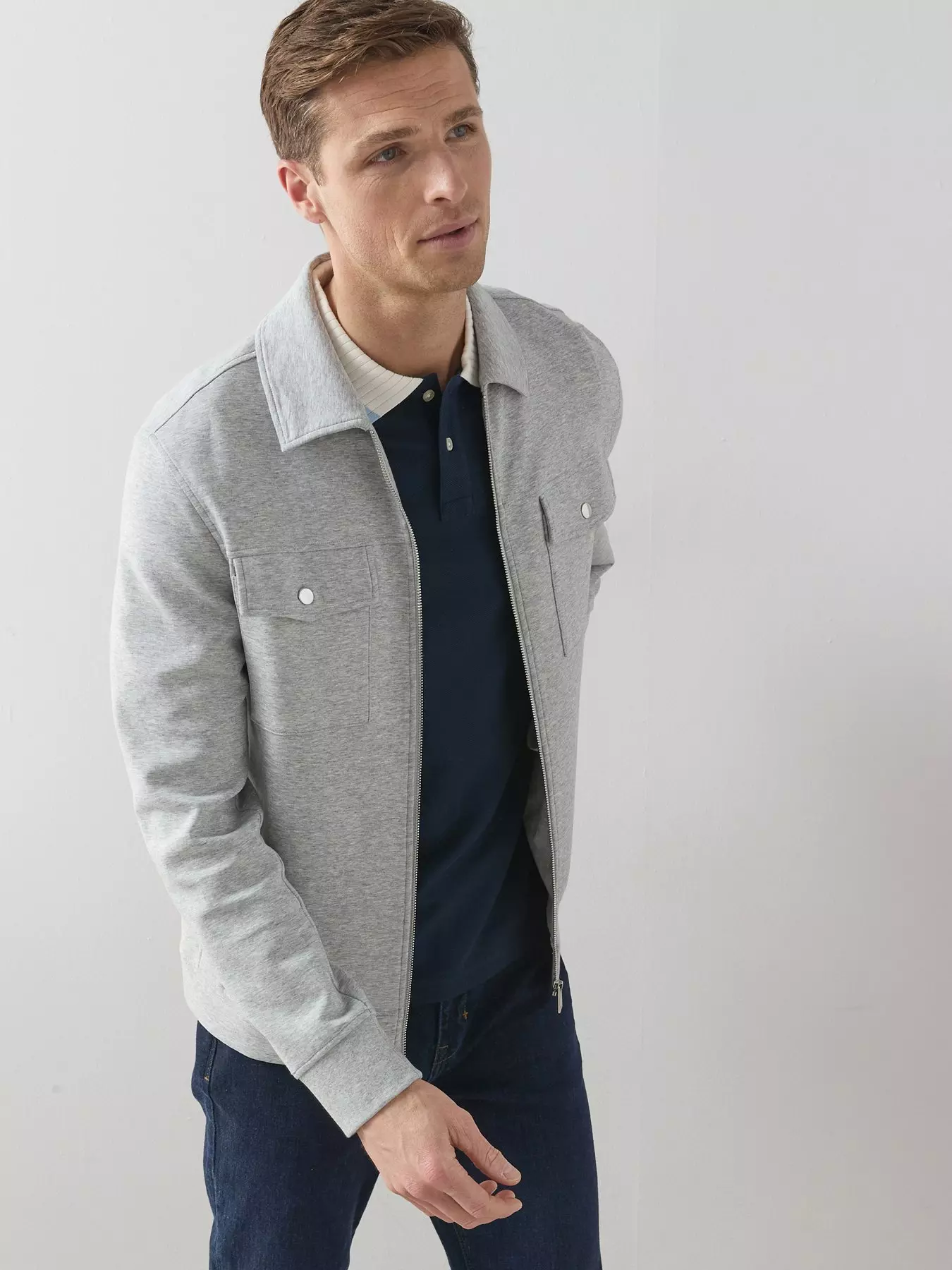 The Very CollectionCotton Rich Jersey Zip Through Jacket - Grey Marl