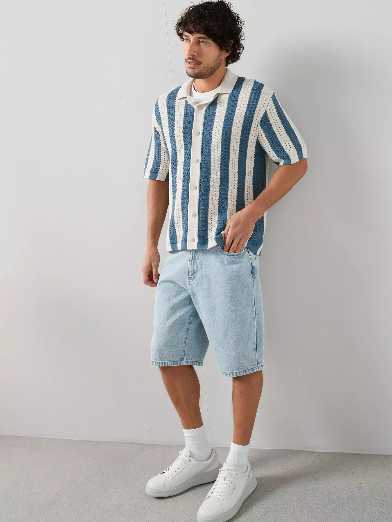 The Very CollectionCrochet Stripe Button Through Shirt - Ecru