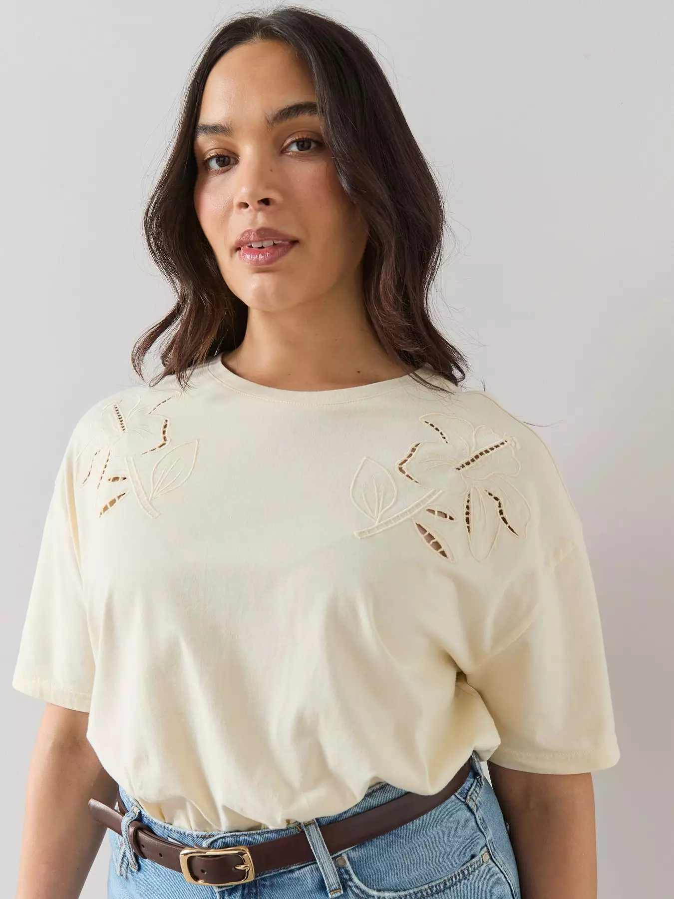 The Very CollectionCurve Embroidered T-shirt - Cream