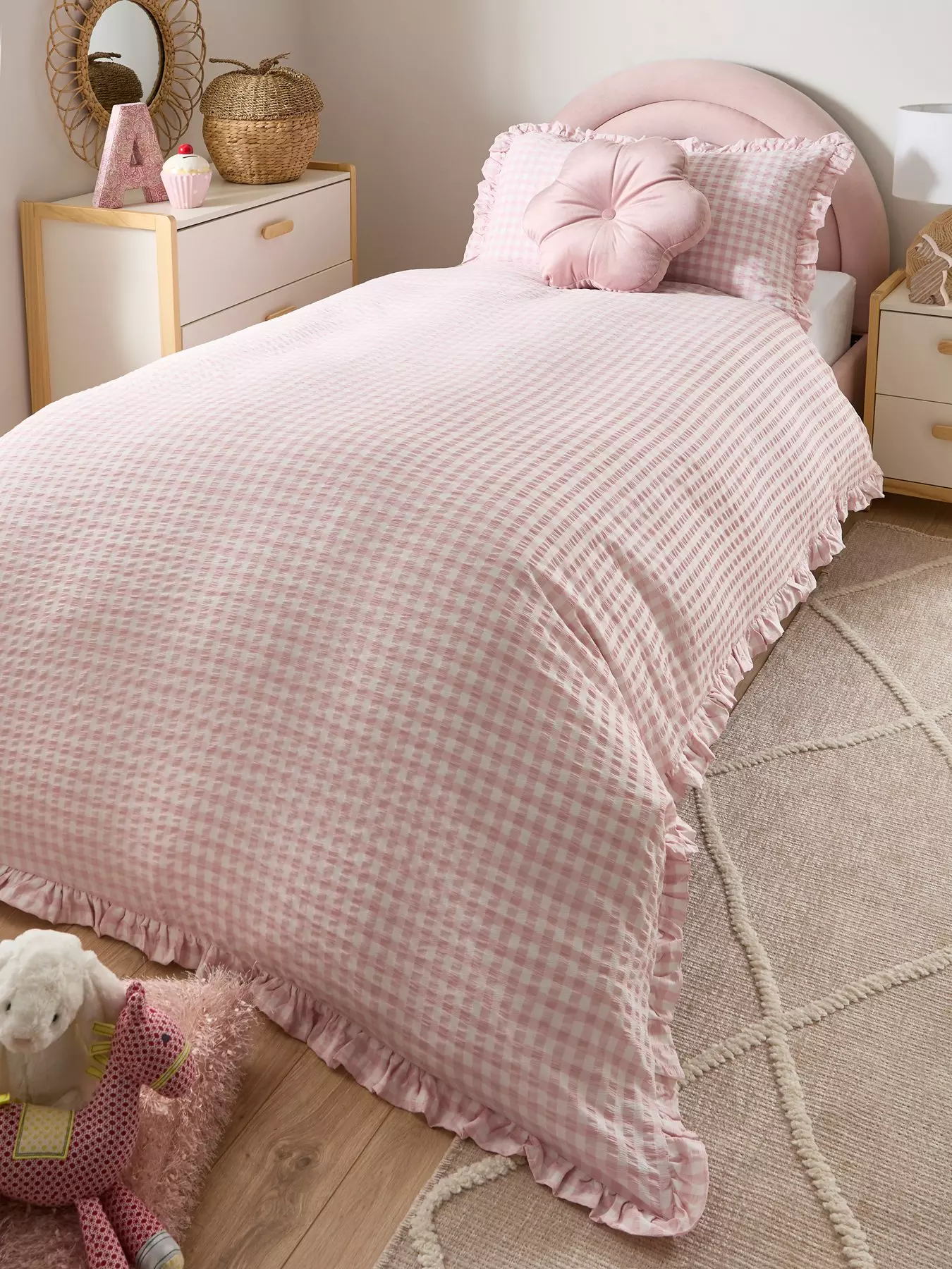 Invite heritage charm into your little one’s sleep space with the Gingham Seersucker duvet cover and pillowcase set by Very Home.In pink and white, its traditional gingham motif is full of charm and elevated by a frilly border running all around the outer edges. The smooth white reverse makes it incredibly inviting, so kids will love snuggling down to a peaceful, relaxing slumber.