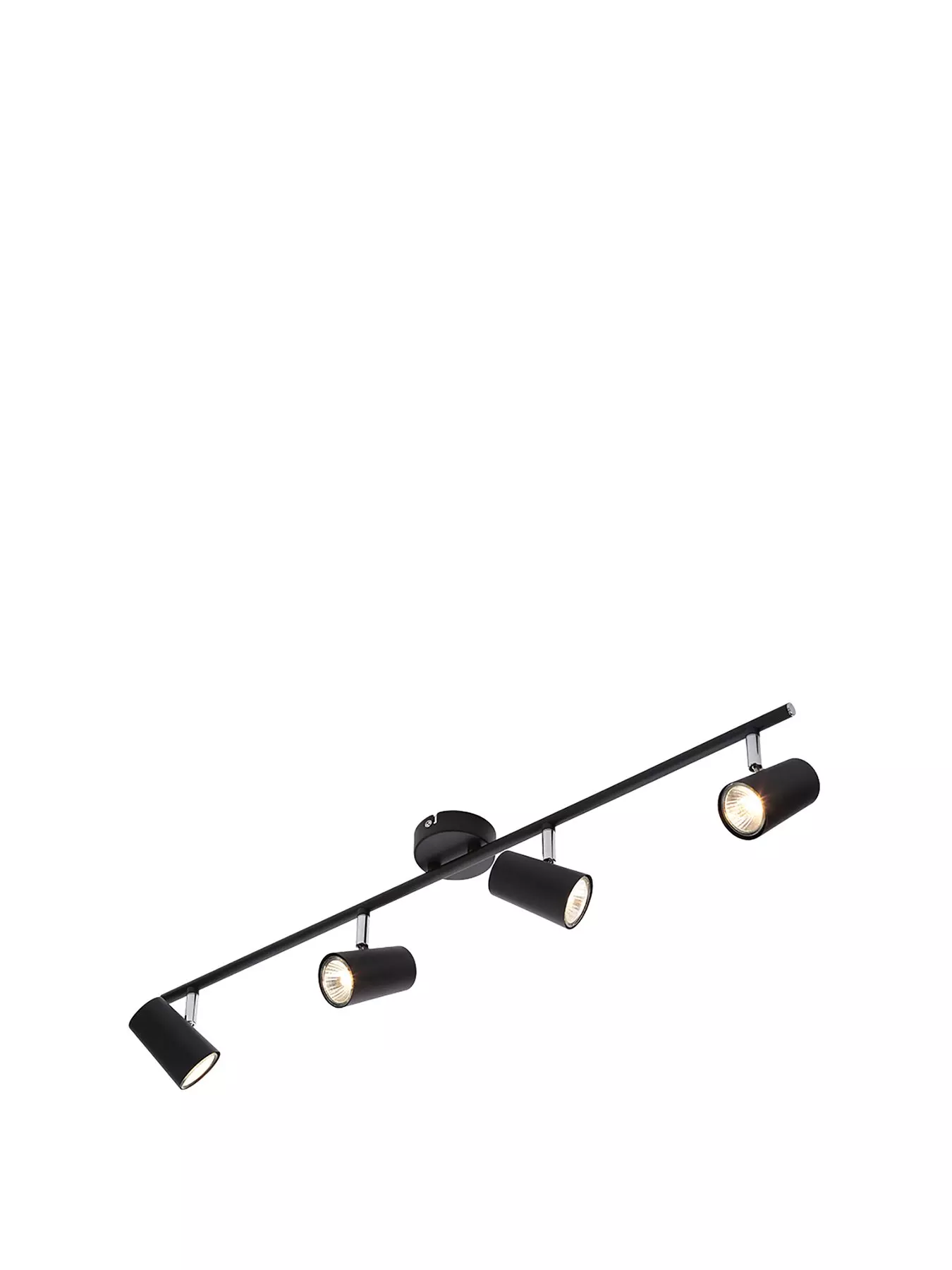 From Spa's Harlo collection of lighting, this metal bar fitting is sure to stand out on your ceiling thanks to its ultra modern black shade.Measuring 78 cm in width, it supports 4 spotlight heads that can be individually adjusted so you can direct the beams of light into different areas of your room when needed (perfect for aiming into a reading area or onto a dining table!). Requires 4x GU10 bulb (not included).