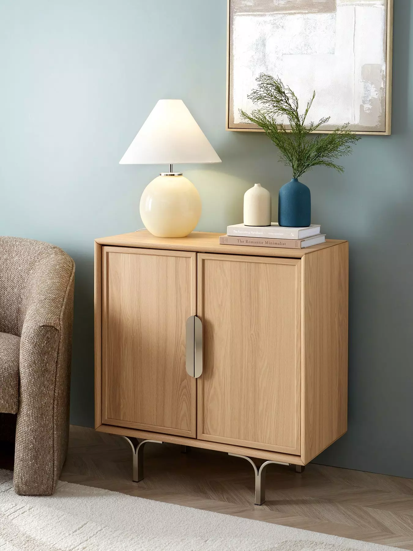 From The Very Collection, this compact sideboard measures just 77 cm wide yest contains plenty of room for storing away clutter. Light oak-effect gives it a modern finish, while metal legs and matching handles ensure added contemporary style points.Please remember to measure your available space before ordering.