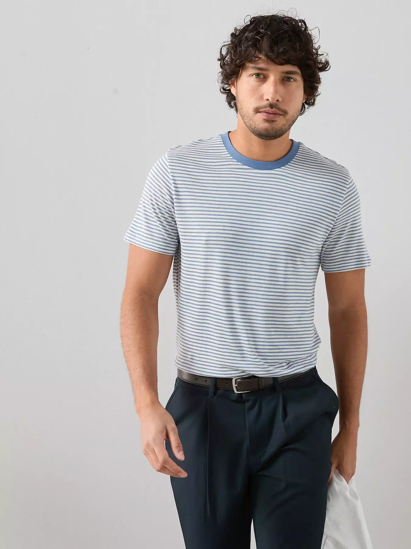 The Very CollectionLinen Blend Stripe T-Shirt - Blue