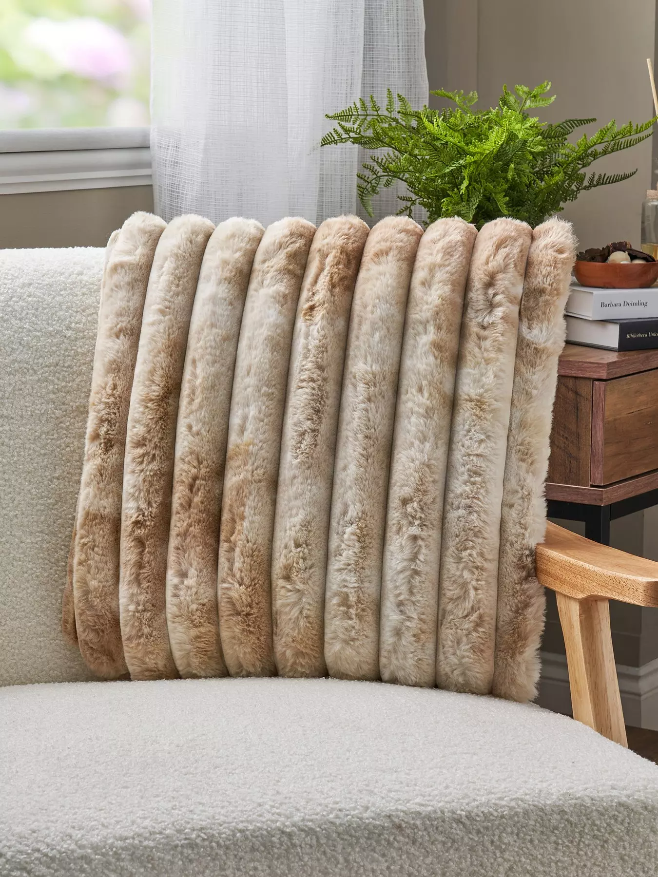 - Indulge in the incredibly soft feel of our Marled Rib Faux Fur Cushion.
